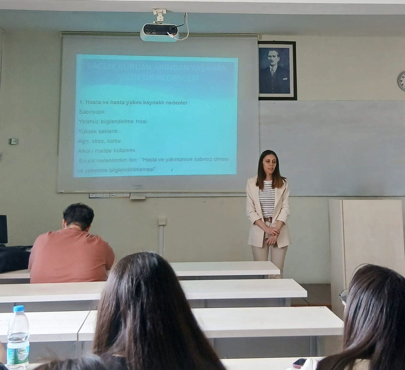 A seminar was organized for the students of our Vocational School to raise awareness about violence against healthcare workers. During the event, the causes, types, and consequences of violence in healthcare were discussed.