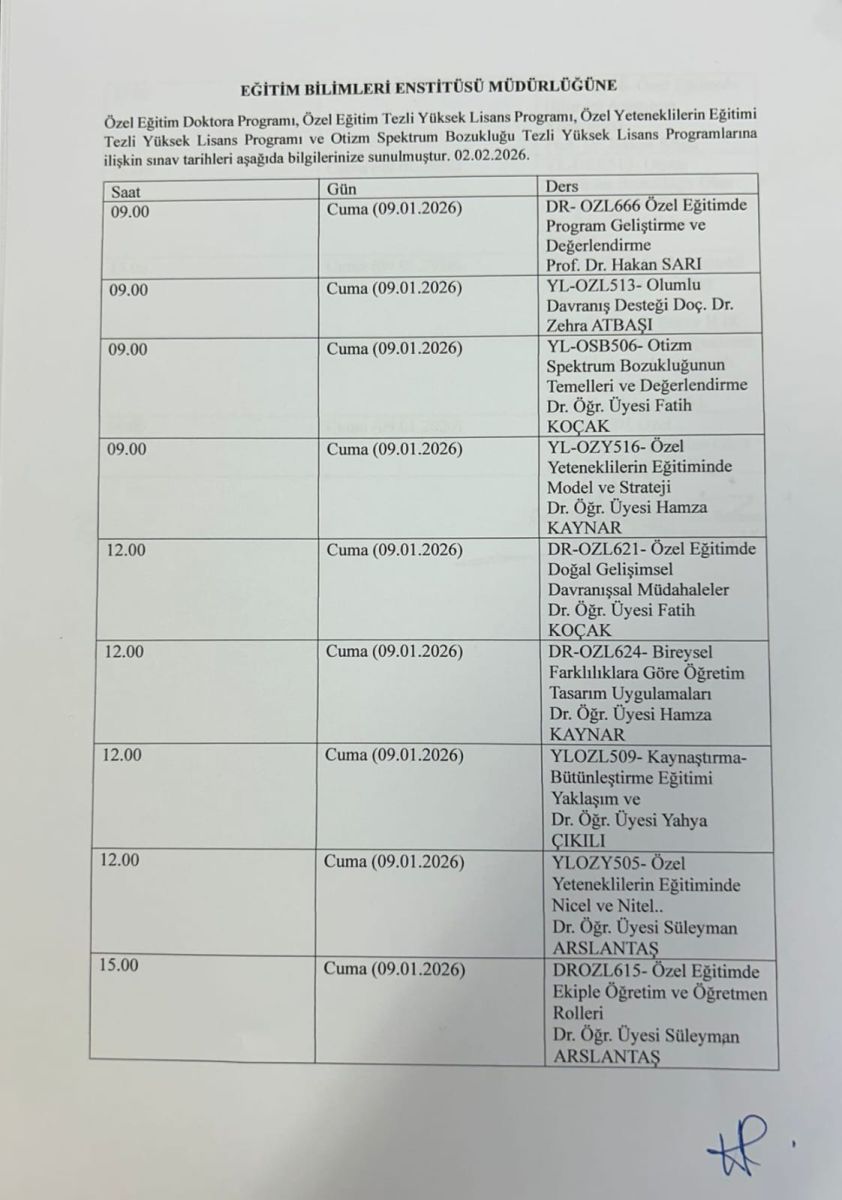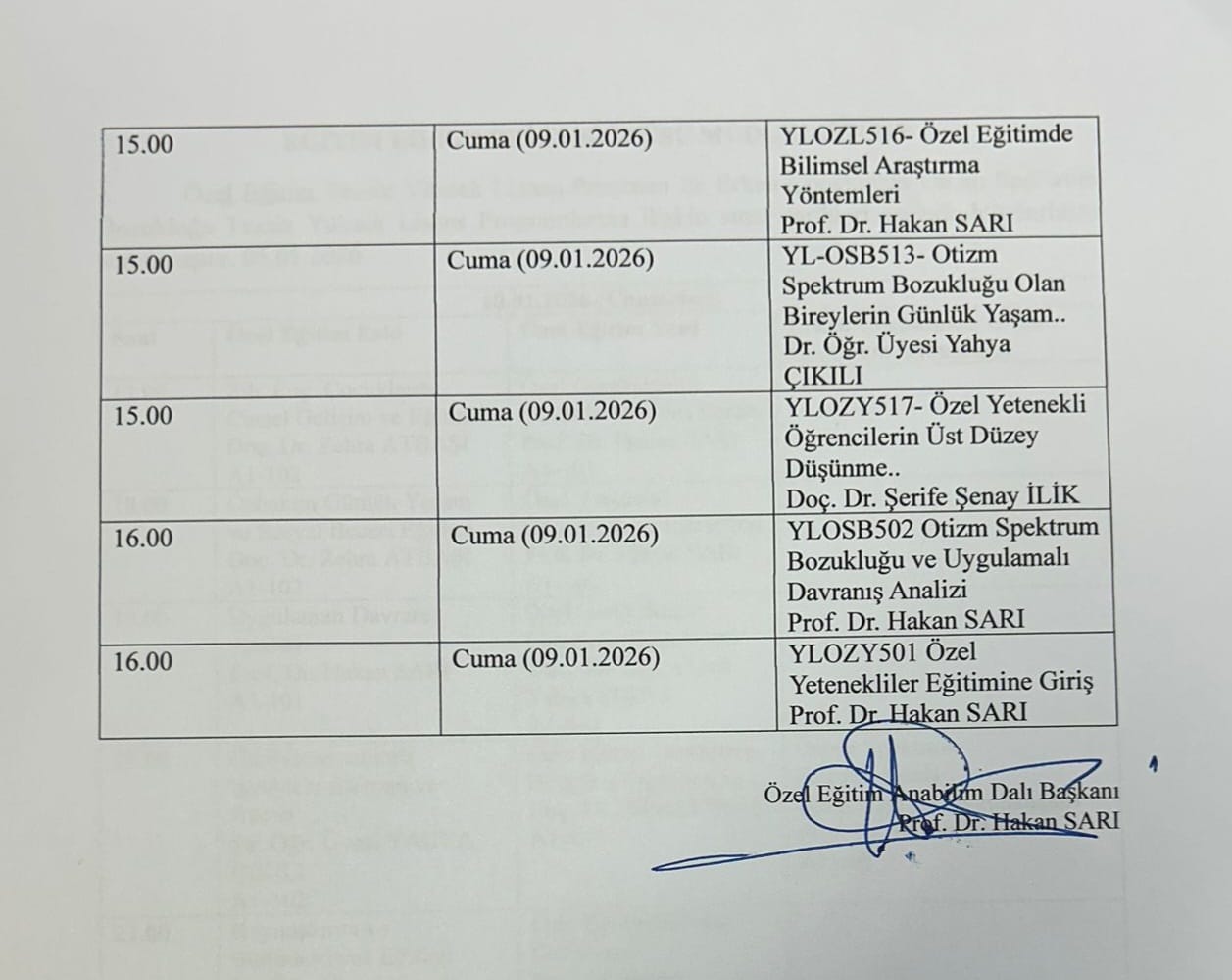 2025-2026 Güz Tezli Yüksek Lisans ve Doktora Final Programları
