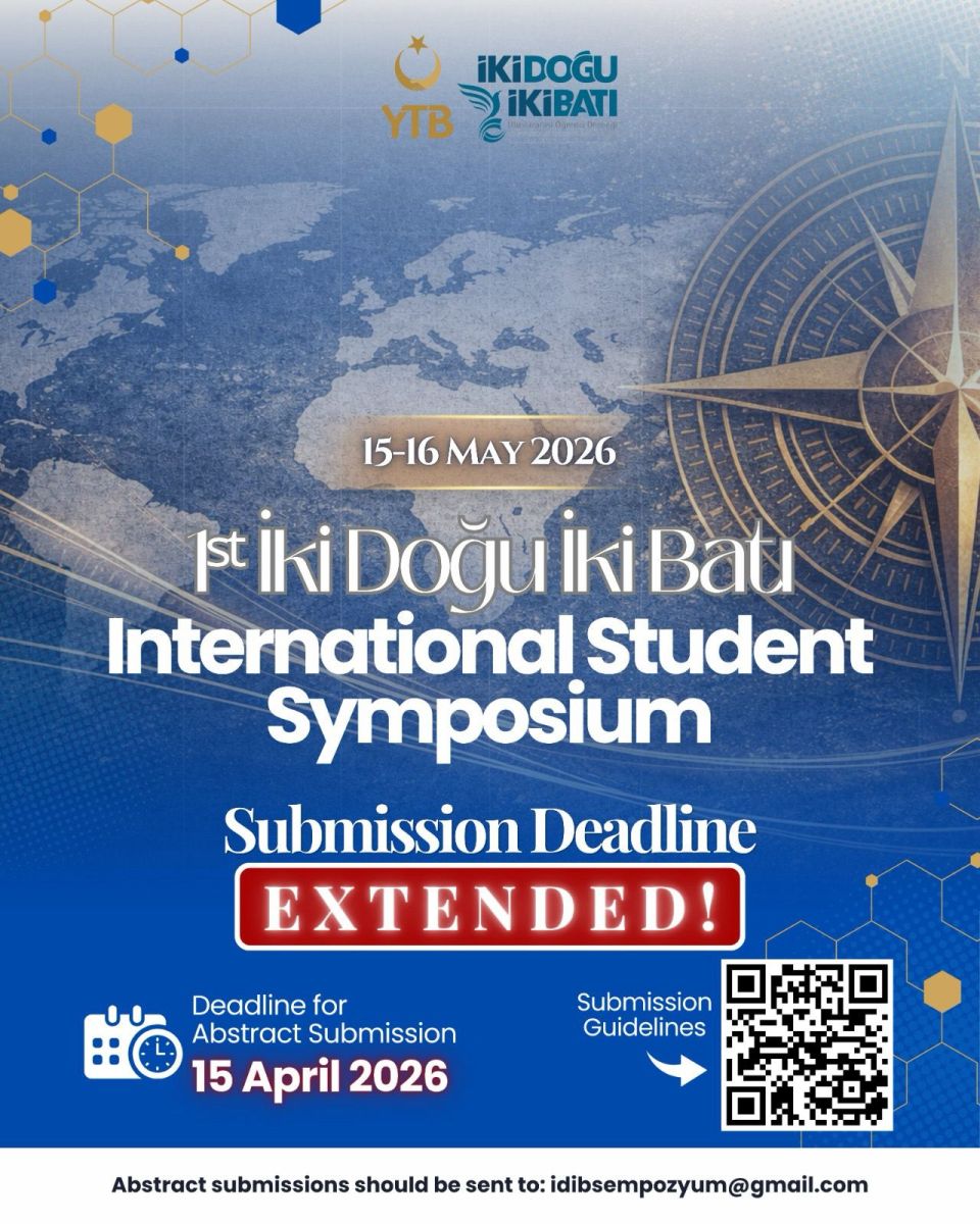 Uluslararası akademik etkileşimi güçlendirmeyi amaçlayan 1st İki Doğu İki Batı International Student Symposium, 15–16 Mayıs 2026 tarihlerinde gerçekleştirilecektir.