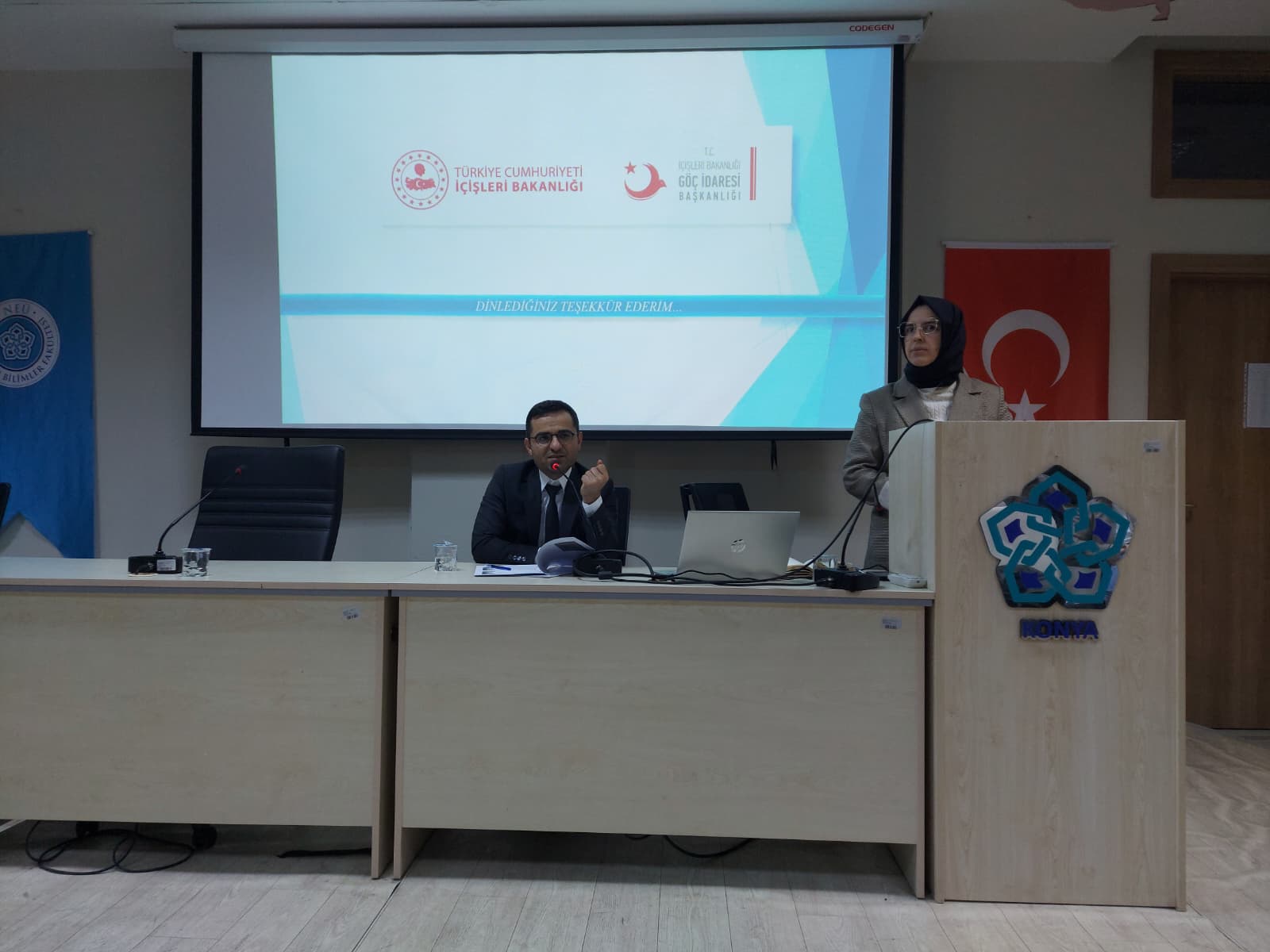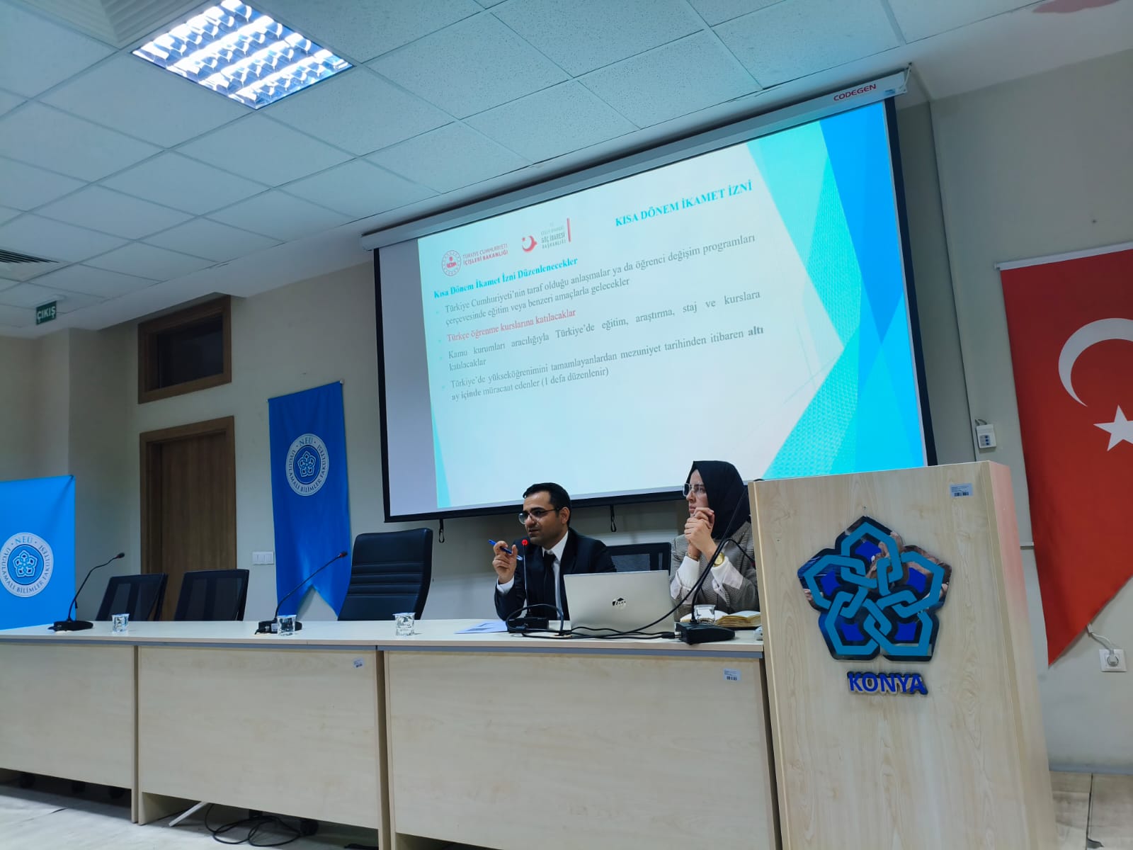 Toplantıya, Konya İl Göç İdaresi Müdürlüğü uzmanları ile Öğrenci İşleri Daire Başkanlığı temsilcileri konuşmacı olarak katıldı. Etkinlikte, uluslararası öğrencilerin Türkiye’deki eğitim süreçleri boyunca karşılaşabilecekleri ikamet izni işlemleri, öğrenci işleri uygulamaları, hak ve sorumluluklar ile yasal yükümlülükler hakkında bilgilendirmelerde bulunuldu.