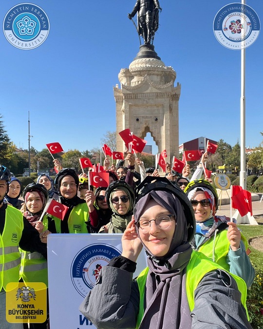 Necmettin Erbakan Üniversitesi İnsan Ekseni Topluluğu, Cumhuriyetimizin 102. yılı kapsamında anlamlı bir etkinliğe imza attı. “Cumhuriyet Rüzgarında Pedallar Dönsün” sloganıyla düzenlenen 29 Ekim Sürüşü, Konya Büyükşehir Belediyesi’nin bisiklet desteğiyle gerçekleştirildi.