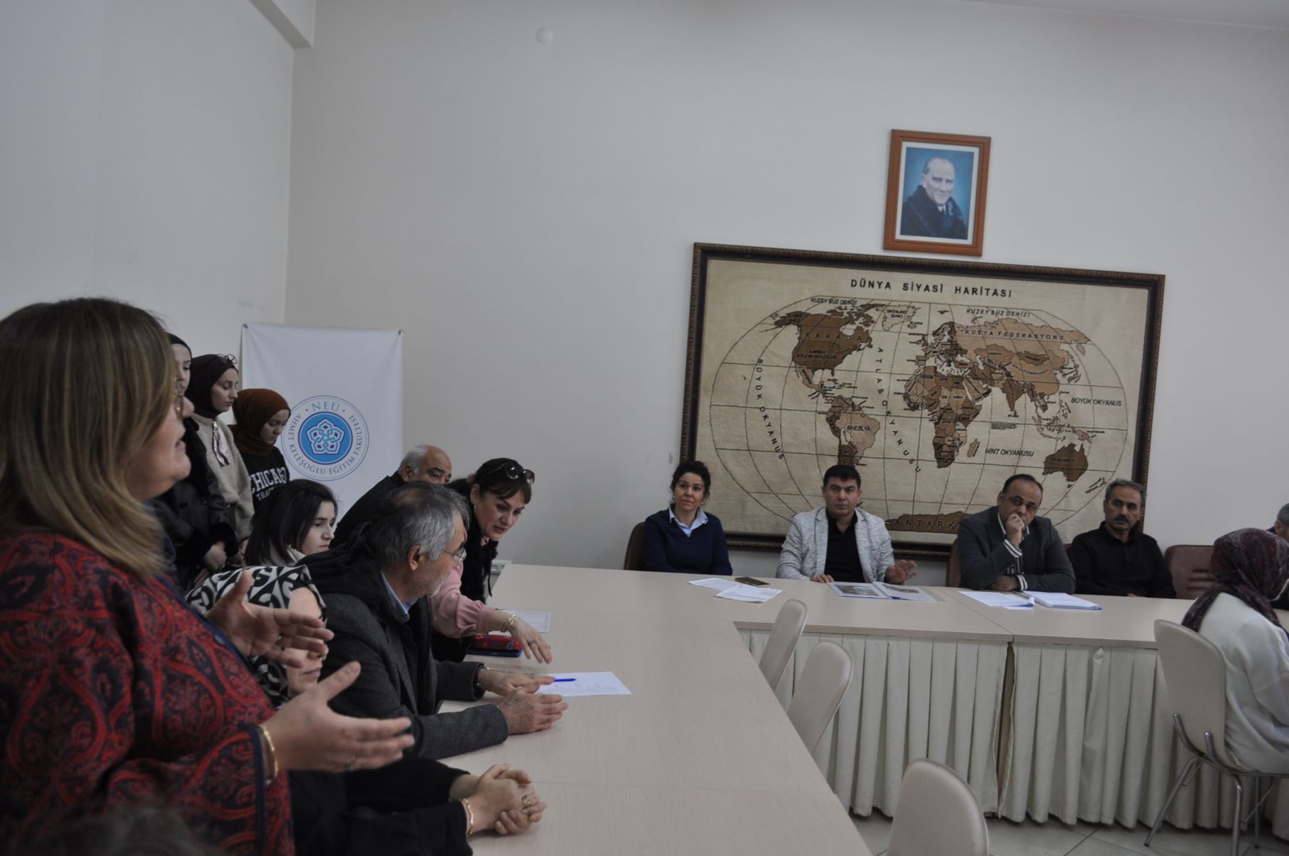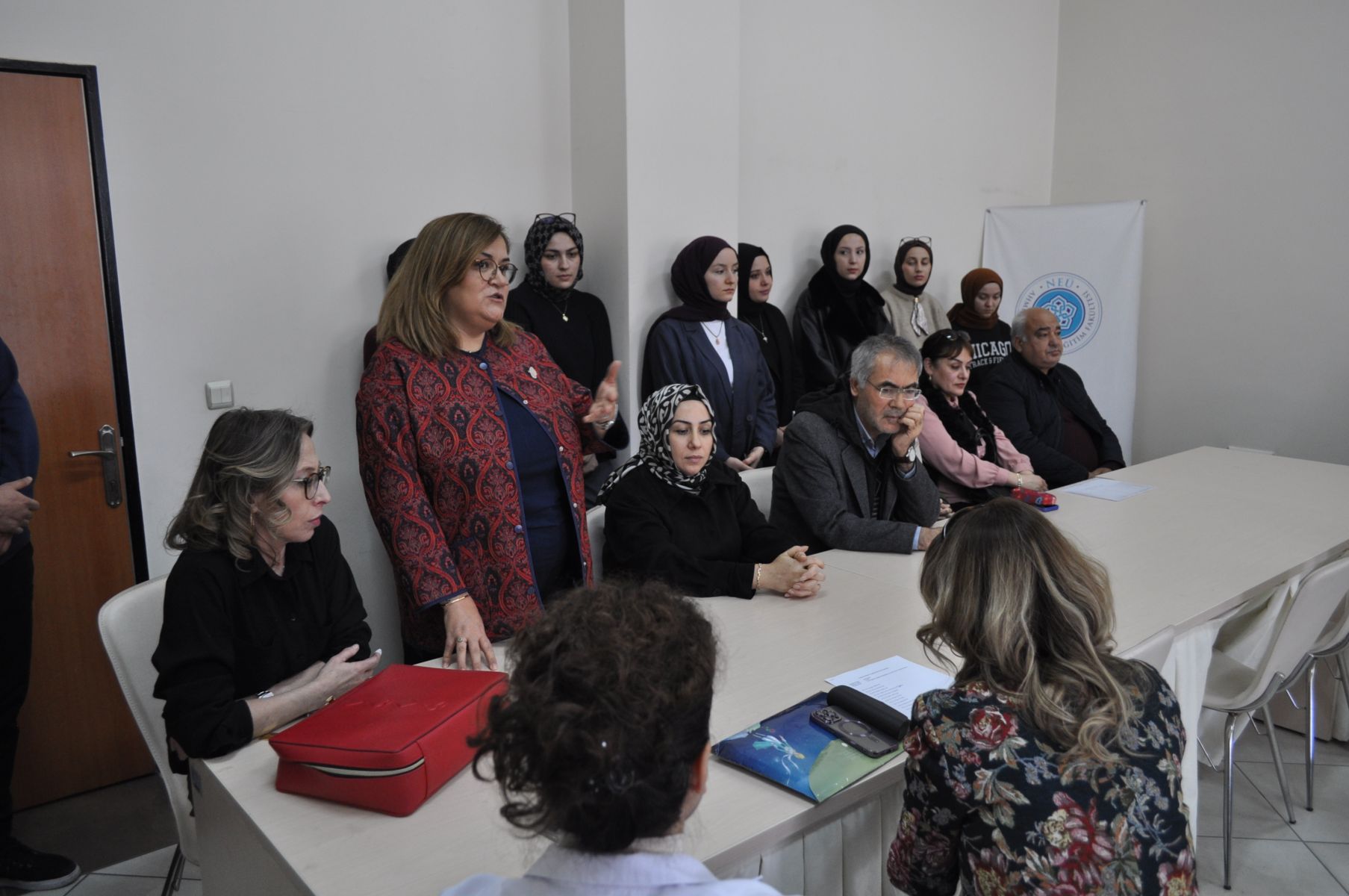 Toplantıda Fakültemiz Topluma Hizmet Uygulamaları Komisyonu (THUK) çalışmaları ile hazırlanan "Topluma Hizmet Uygulamaları Dersi Süreç Kılavuzu " 2025-26 bahar döneminde bu dersi yürüten öğretim üyelerine tanıtıldı. 2025-26 Güz döneminde bu dersi tamamlayan grupların projeleri THUK tarafından Topluma Hizmet Uygulamaları Dersi Süreç Kılavuzu'nda yer alan kriterlere göre incelendi. Komisyon, değerlendirmeye sunulan projeler içerisinden Prof. Dr. Şerife AKPINAR danışmanlığında yürütülen "Kitap toplama/ kütüphane kurma' projesine ödül vermeyi uygun buldu. Çalışmada yer alan öğrencilere Dekanımız Prof. Dr. Mürsel Biçer tarafından ödülleri verildi.
