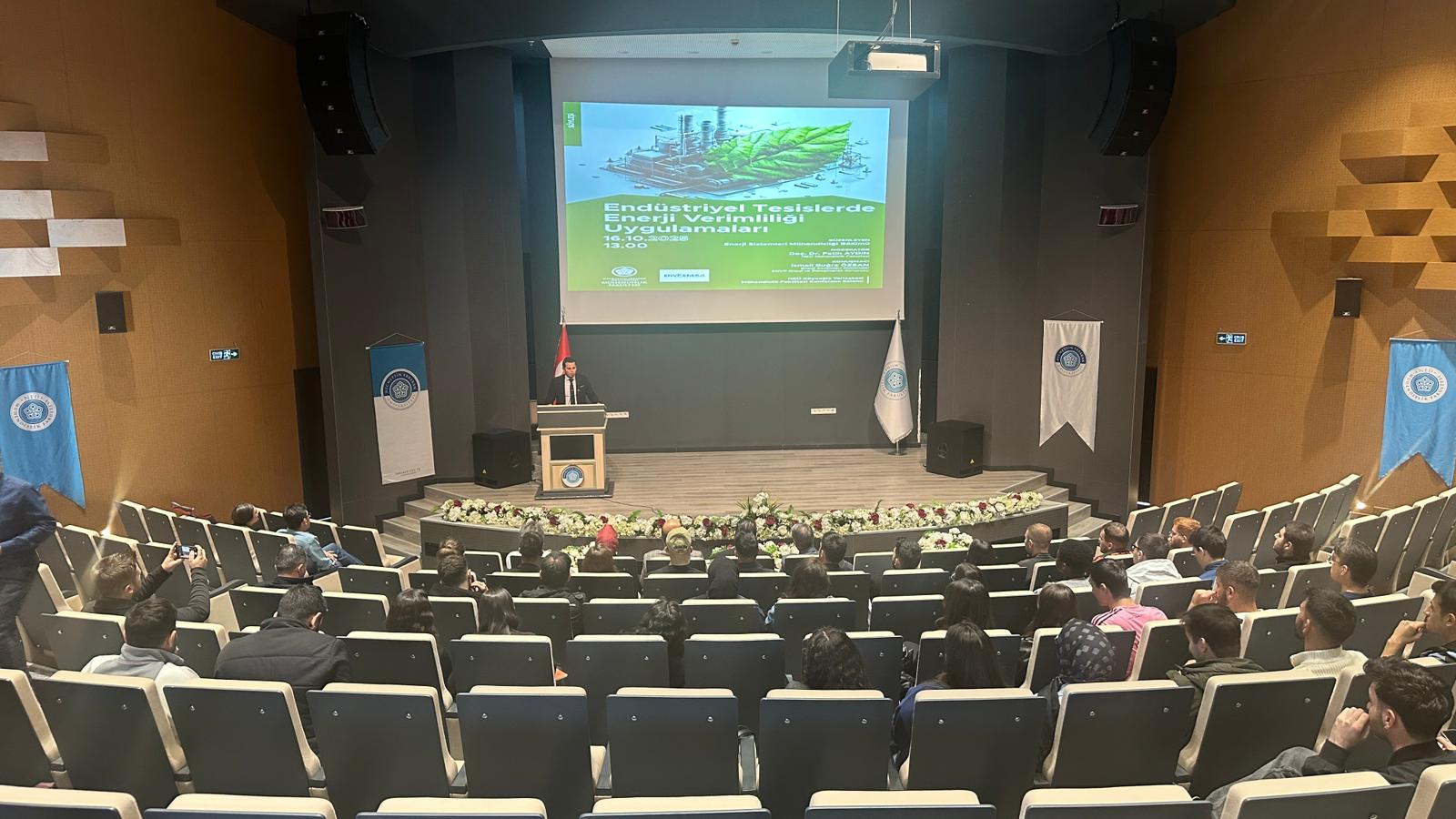 Necmettin Erbakan Üniversitesi Mühendislik Fakültesi Enerji Sistemleri Mühendisliği Bölümü tarafından, “Endüstriyel Tesislerde Enerji Verimliliği Uygulamaları” konulu bir söyleşi düzenlendi