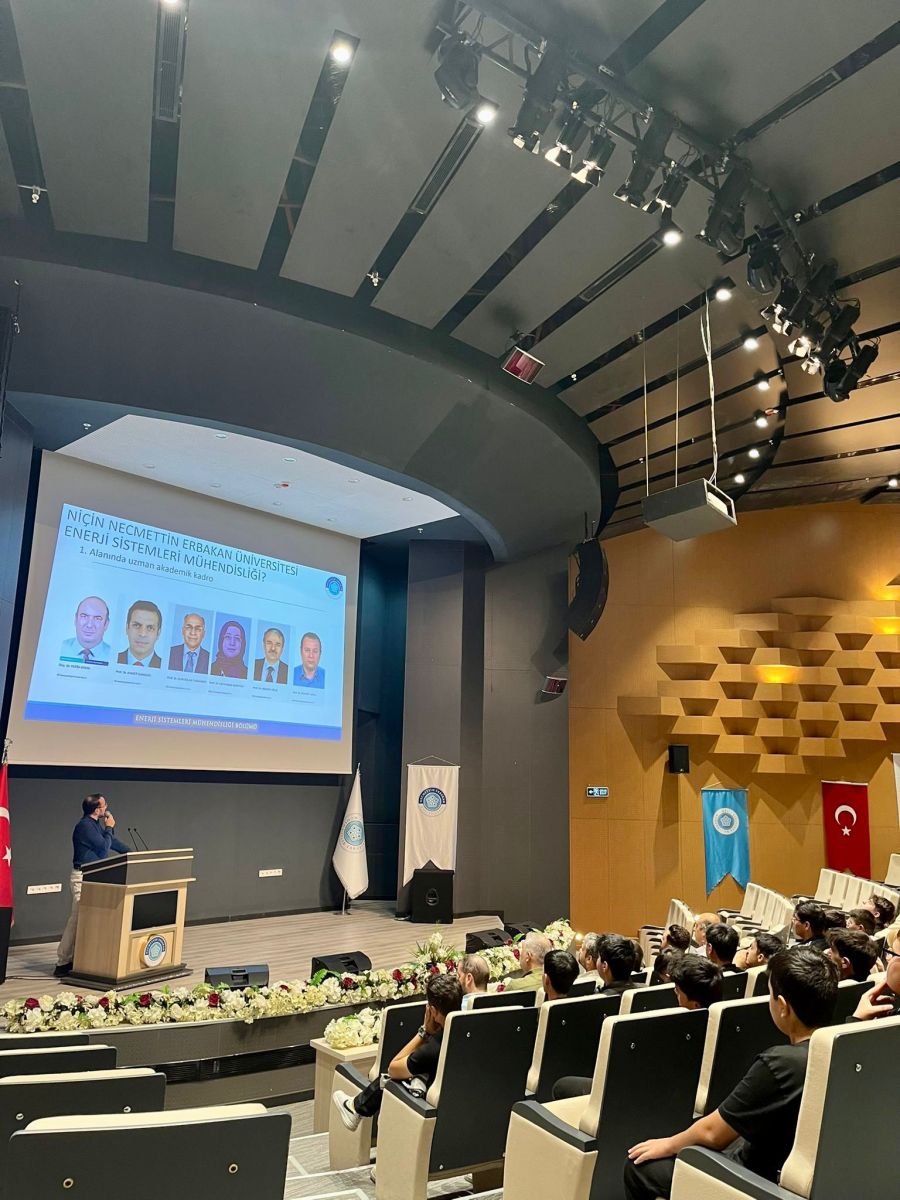 Program, fakültemiz konferans salonunda gerçekleştirilen tanıtım sunumu ile başladı. Sunumu, bölümümüz adına Arş. Gör. Dr. Hasan Basri ALTINTAŞ gerçekleştirdi. Öğrencilere bölümün yapısı, akademik olanakları ve enerji mühendisliğinin günümüzdeki önemi hakkında bilgiler aktarıldı.