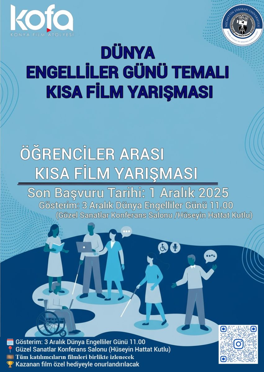 Necmettin Erbakan Üniversitesi ile Konya Film Atölyesi (KOFA) iş birliğinde, 3 Aralık Dünya Engelliler Günü kapsamında “Dünya Engelliler Günü Temalı Öğrenciler Arası Kısa Film Yarışması” düzenlenecektir.