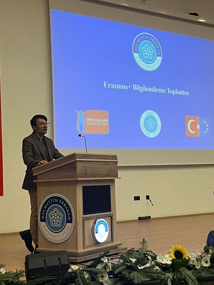 Toplantıda, Erasmus Koordinatörlüğü Koordinatör Yardımcısı Dr. Öğr. Üyesi Ahmet Göksel Uluer ve Ayşe Banu Arlı konuşmacı olarak yer aldı. Program kapsamında Erasmus+ programının genel çerçevesi, başvuru süreçleri, seçim kriterleri, hibe yapısı ve hareketlilik türleri hakkında kapsamlı bilgiler paylaşıldı.