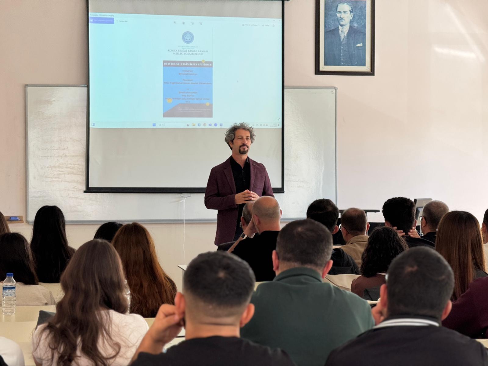 2025-2026 güz dönemi açılış dersi Seminerimiz büyük bir katılımla tamamlandı. Konya Ereğli Kemal Akman Meslek Yüksekokulu Müdürümüz Sn. Prof. Dr. Metin ARMAĞAN tarafından öğrencilerimize 2025-2026 güz dönemi açılış dersi verildi.