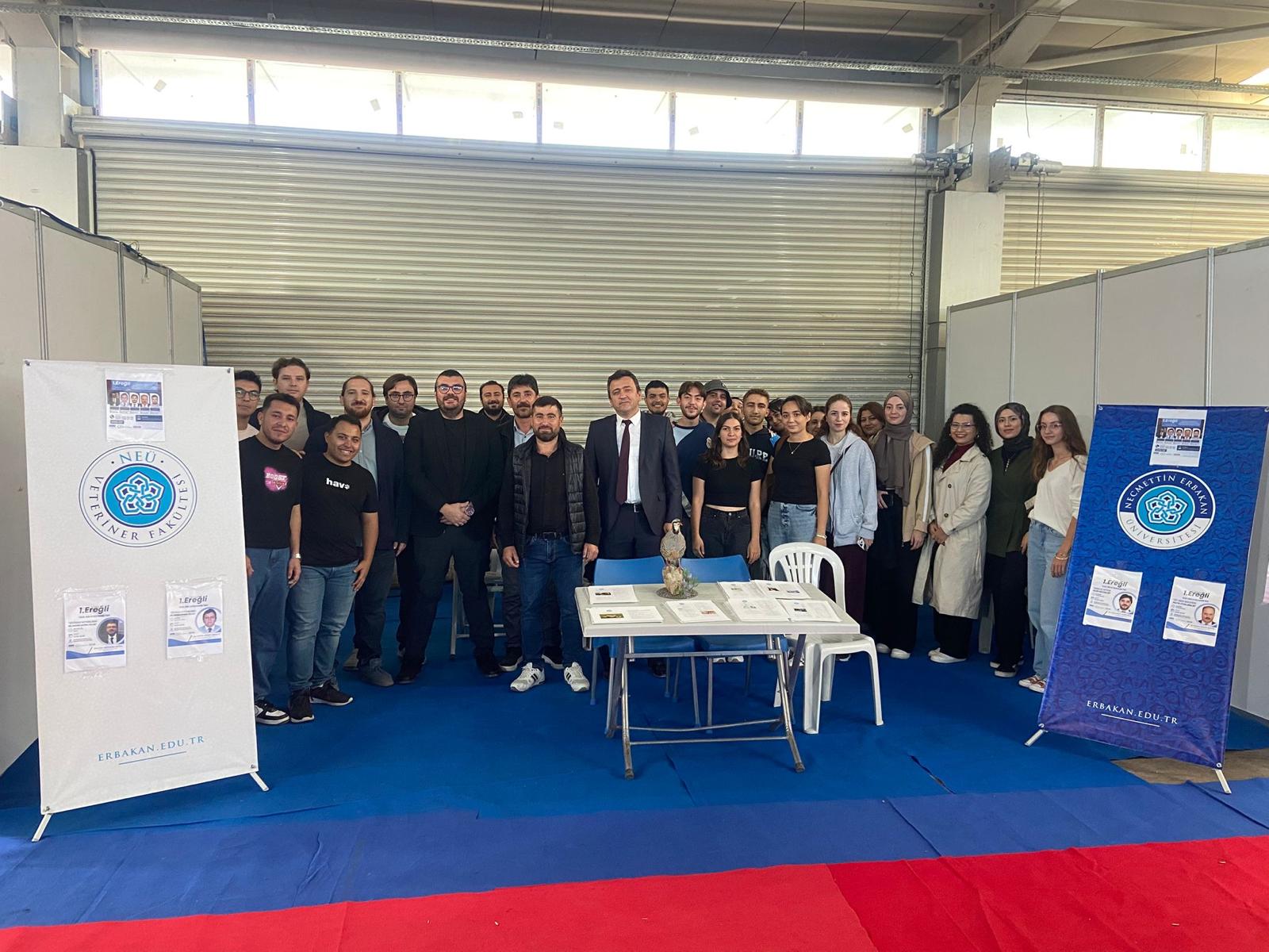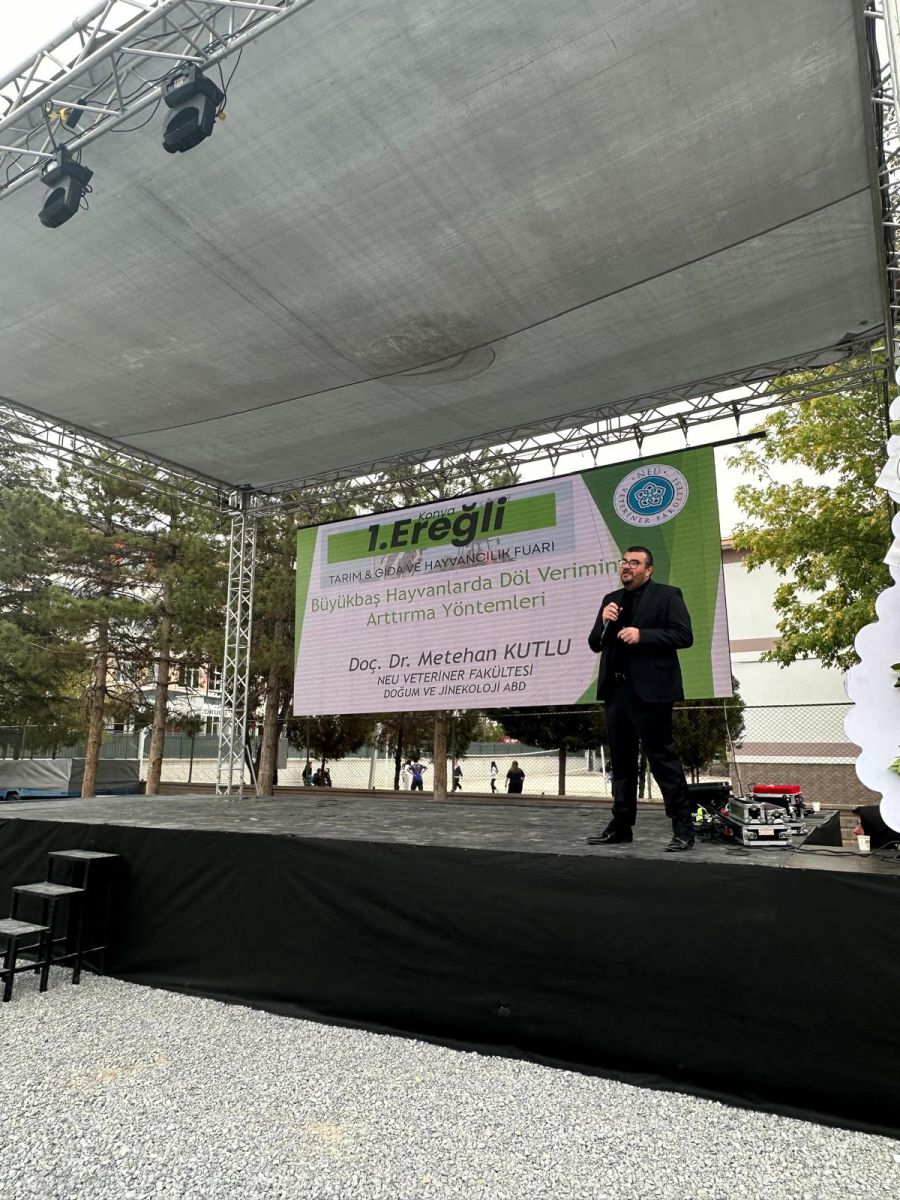 1. Konya-Ereğli Tarım Gıda ve Hayvancılık Fuarı fakültemizin kıymetli hocaları; Doç. Dr. Metehan Kutlu, Dr. Öğretim Üyesi Neffel Kürşat AKBULUT, Dr. Öğretim Üyesi Muhammet Hanifi SELVİ ve Dr. Öğretim Üyesi Hasan Hüseyin ŞENYÜZ'ün sunumları ile başarılı bir şekilde gerçekleştirilmiştir. Hocalarımızı Ereğli halkı, meslek paydaşları, yetiştiriciler ve öğrencilerimiz için yapmış oldukları sunumlardan dolayı tebrik ederiz. Ayrıca fuar süresince göstermiş oldukları özverili gayret için Vet. Hekim Fatih TOKAY, Vet. Tek. İbrahim GÜR ve Ve. Tek. Fatih Mürsel ŞİMŞEK'e teşekkür ederiz.