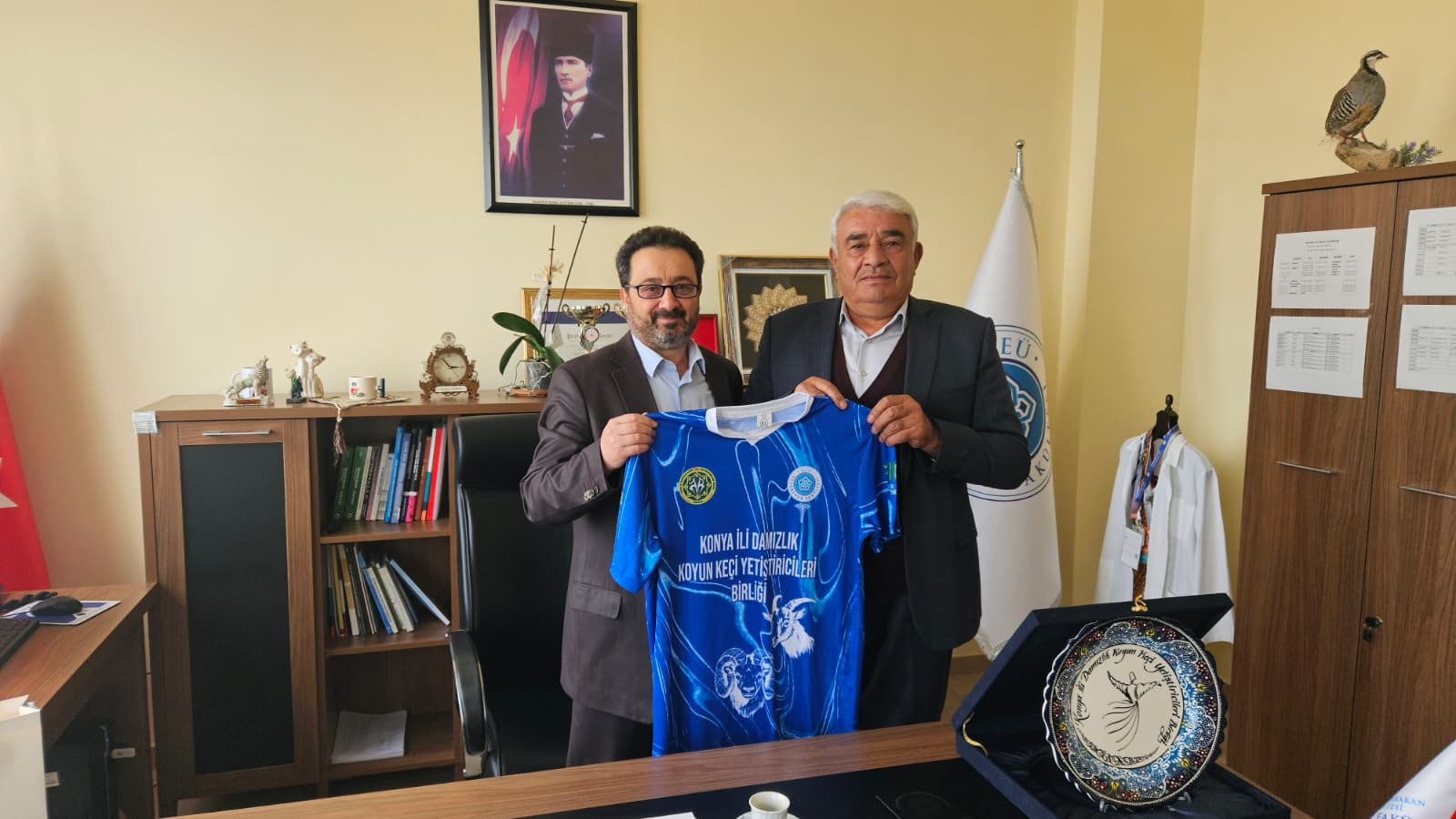 Konya İli Damızlık Koyun Keçi Birliği Başkanı Fettah ÖZTÜRK ve Birlik Sorumlu Müdürü Ercan YAYLACI Dekanımız Prof. Dr. Ramazan GÖNENCİ'yi ziyaret etmiştir. Ziyarette ikili işbirliği ve projeler ele alınmıştır. Konya İli DKKYB aynı zamanda Fakültemiz futbol takımına forma desteği sağlamış ve sponsorumuz olmuştur. Ziyaretleri ve öğrencilerimize desteğinden dolayı Birlik Başkanı, Birlik Yönetimi ve Sorumlu Müdürüne teşekkür ederiz.