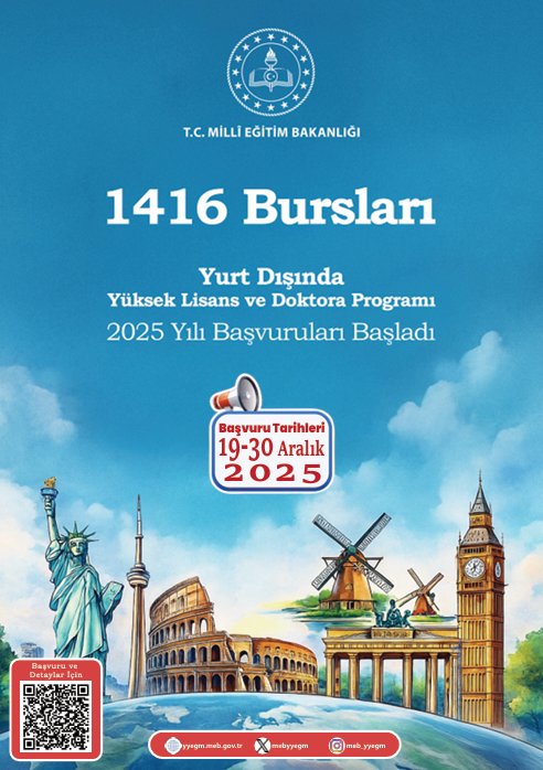 Milli Eğitim Bakanlığı tarafından 19 - 30 Aralık 2025 tarihleri arasında başvuruları alınan "2025 Yılı 1416 2025 yılı başvuruları başladı. Program kapsamında 2025 yılı "1416 Bursları Başvuru ve Tercih Kılavuzu" Bakanlık tarafından (https://yyegm.meb.gov.tr/) adresinde yayımlanmıştır.