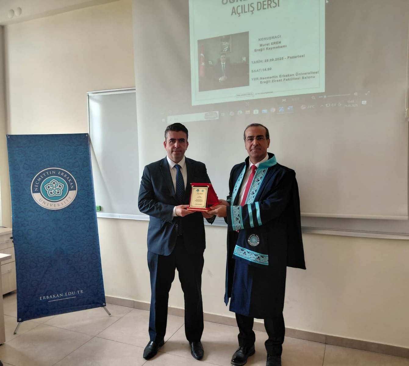 Necmettin Erbakan Üniversitesi Ereğli Ziraat Fakültesi 2025-2026 Eğitim-Öğretim Yılının ilk dersini Ereğli Kaymakamımız Sayın Murat Eren gerçekleştirdi.