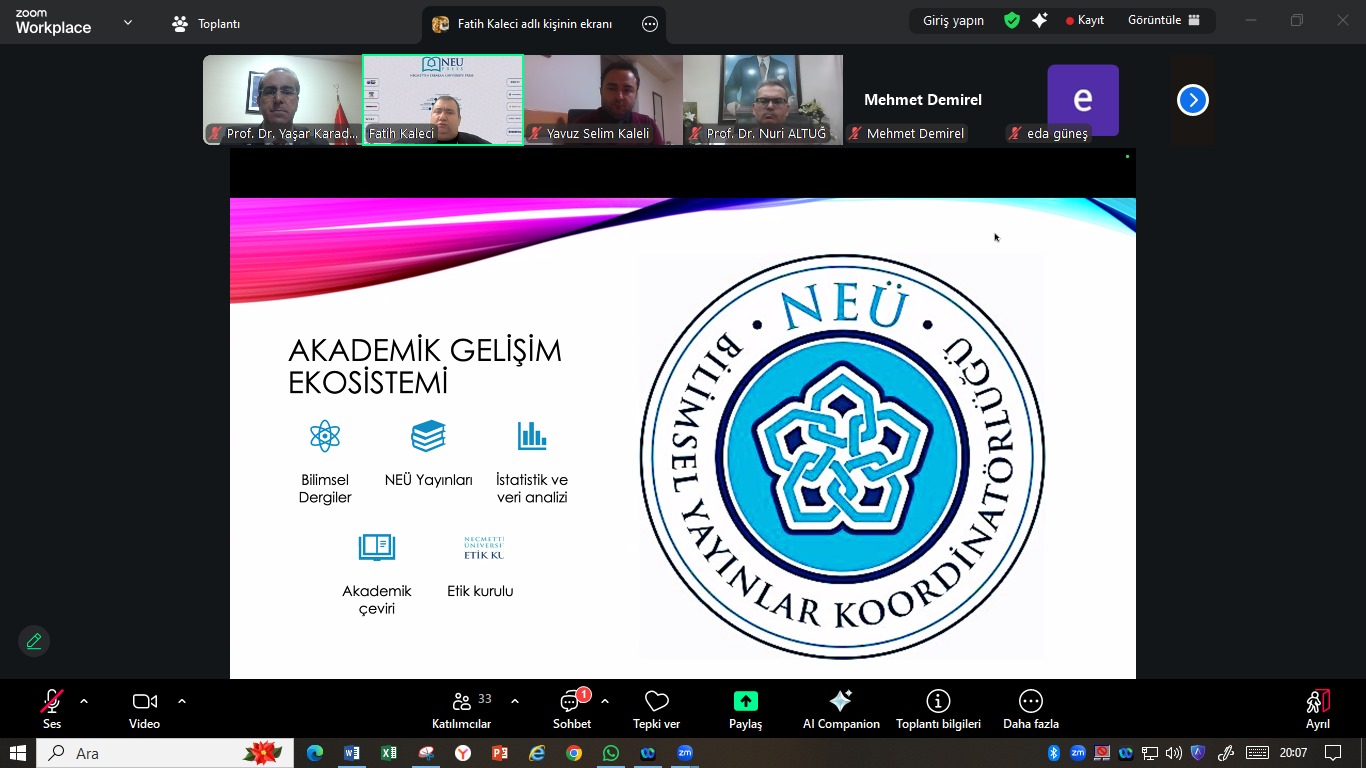 Toplantıya Necmettin Erbakan Üniversitesi Kütüphane ve Dokümantasyon Daire Başkanı ve Necmettin Erbakan University Press (NEU PRESS) Genel Direktörü Sayın Dr. Öğr. Üyesi Fatih Kaleci, NEÜ Ereğli Eğitim Faklütesi Dekanı ve REPVAS Dergi Editörü Sayın Prof. Dr. Nuri Altuğ, NEÜ Turizm Fakültesi Dekanı Sayın Prof. Dr. Mehmet Demirel, NEÜ Hukuk Fakültesi Dekanı Sayın Prof. Dr. Nuran Koyuncu, Ereğli Tarım Bilimleri Dergisi Editörü Sayın Doç. Dr. Sevim Seda Yamaç, Ereğli Tarım Bilimleri Dergisi Editör Yardımcısı Sayın Dr. Öğr. Üyesi Seda Günaydın ve NEÜ PRESS Dergi Editörleri katılım sağladı.