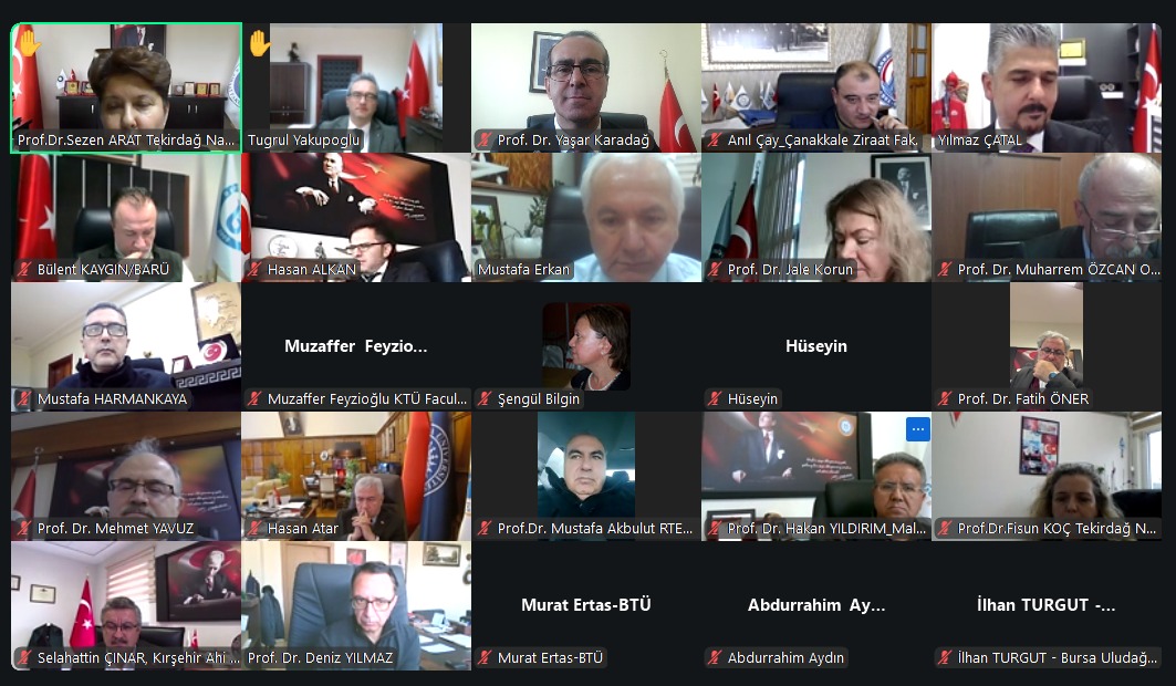 Çevrimiçi olarak düzenlenen toplantıda Tarım, Orman ve Su Ürünleri Konsey Başkanı ve aynı zamanda İsparta Uygulamalı Bilimler Üniversitesi Rekötrü Sayın Prof. Dr. Yılmaz Çatal Başkanlığında YÖK Başkanımız Sayın Prof. Dr. Erol Özvar’ın üniversitelerin 3 yıla kısaltamısa konusuyla ilgili yapılan toplantı tüm fakülteler için tek oturumda çevrim içi ortamda gerçekleştirildi.
