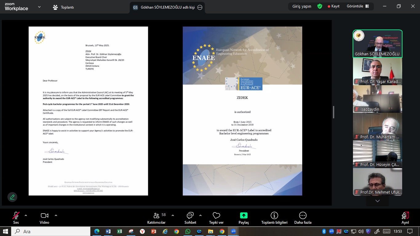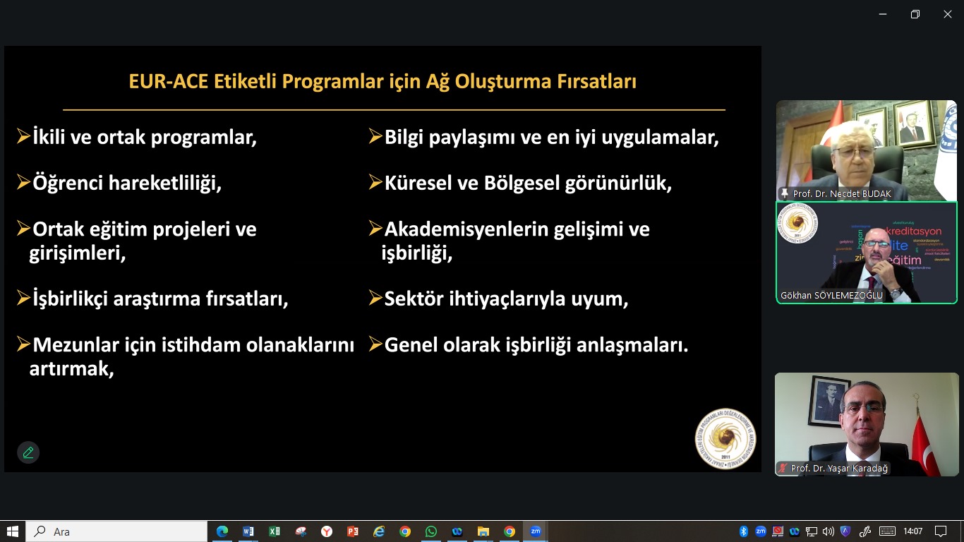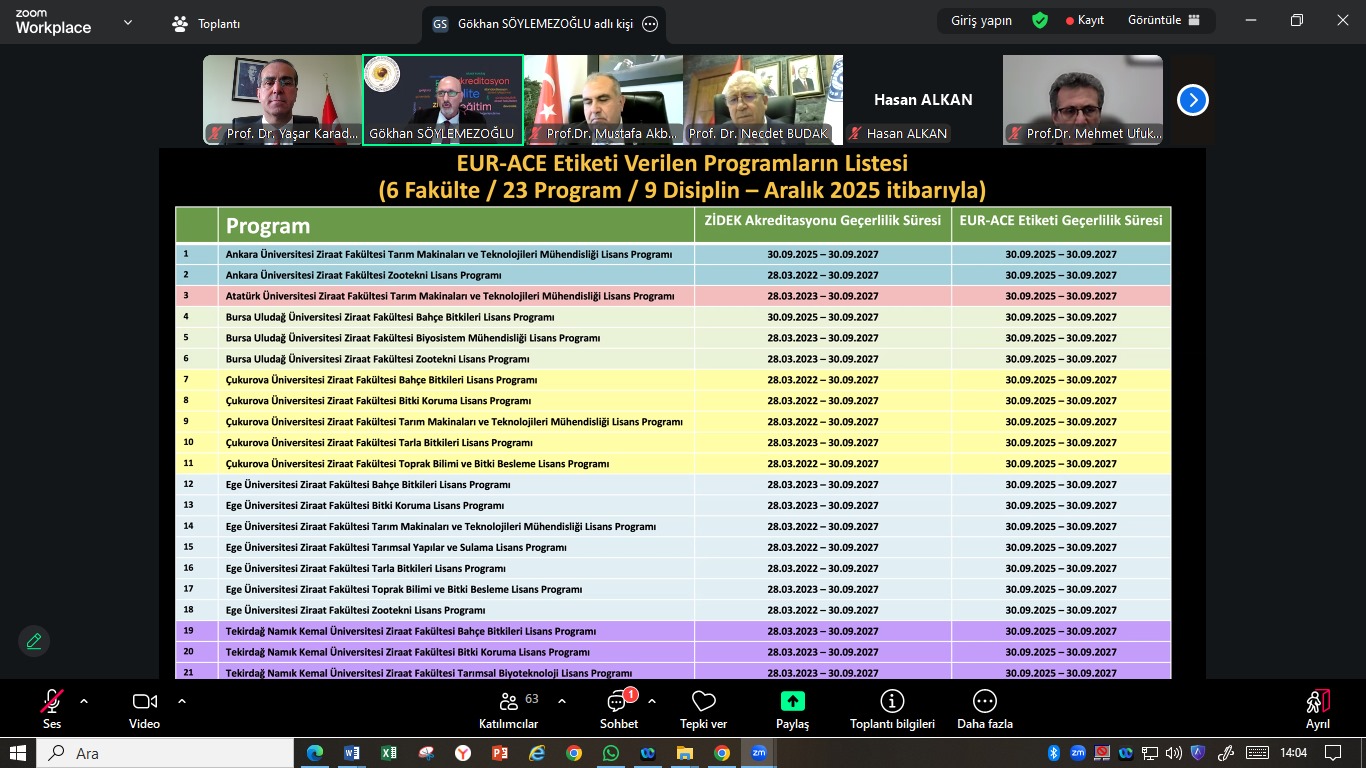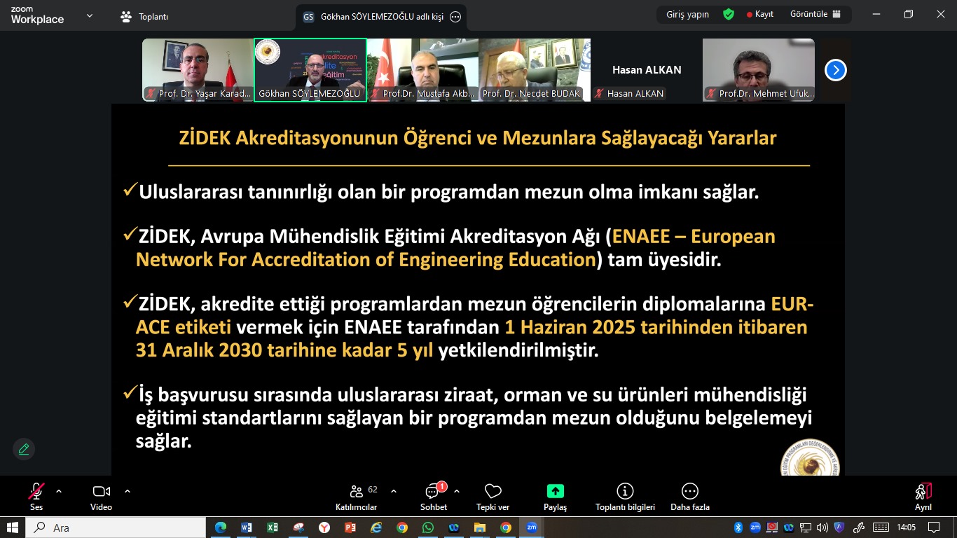 Toplantıda Konsey Başkanı ve aynı zamanda Ege Üniversitesi Rektörü Sayın Prof. Dr. Necdet Budak’ın açılış ve değerlendirme konuşmasının ardından, Ziraat Fakülteleri Eğitim Programları Değerlendirme ve Akreditasyon Derneği (ZİDEK) Yönetim Kurulu Başkanı Sayın Prof. Dr. Gökhan Söylemezoğlu 2025 yılı ZİDEK Değerlendirme ve Akreditasyon Faaliyetleri hakkında bilgilendirme sunumu gerçekleştirdi. Prof. Söylemezoğlu, konuşmasında ayrıca EUR-ACE Etiketi ve 2027 başvuru döneminden itibaren geçerli olacak ZİDEK Lisans Programları Değerlendirme Ölçütleri 3.0 hakkında bilgilendirmede bulundu.
