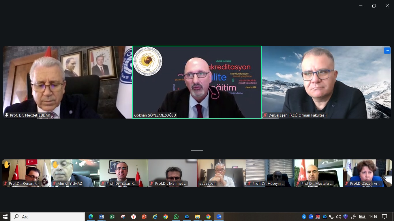 Çevrimiçi olarak düzenlen toplantıda Tarım, Orman ve Su Ürünleri Konsey Başkanı ve aynı zamanda Ege Üniversitesi Rektörü Sayın Prof. Dr. Necdet Budak Başkanlığında Konsey-ZİDEK paydaş toplantısı tüm fakülteler için tek oturumda çevrim içi ortamda gerçekleştirildi.