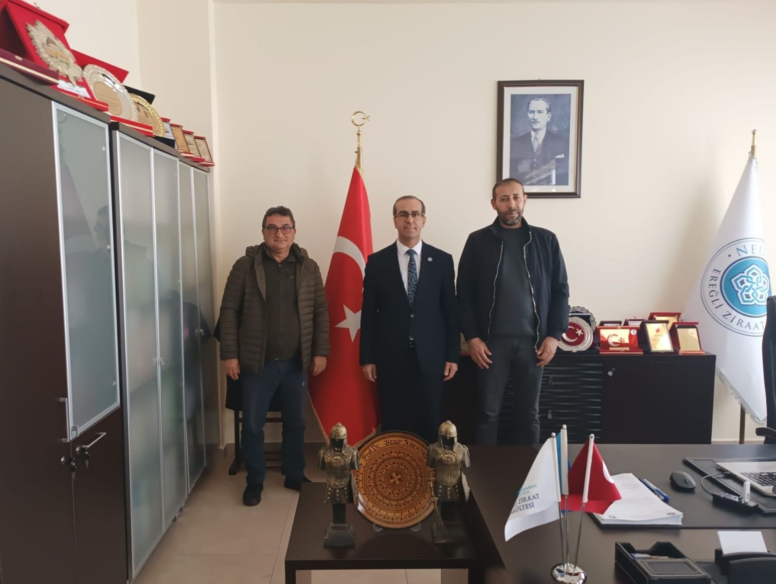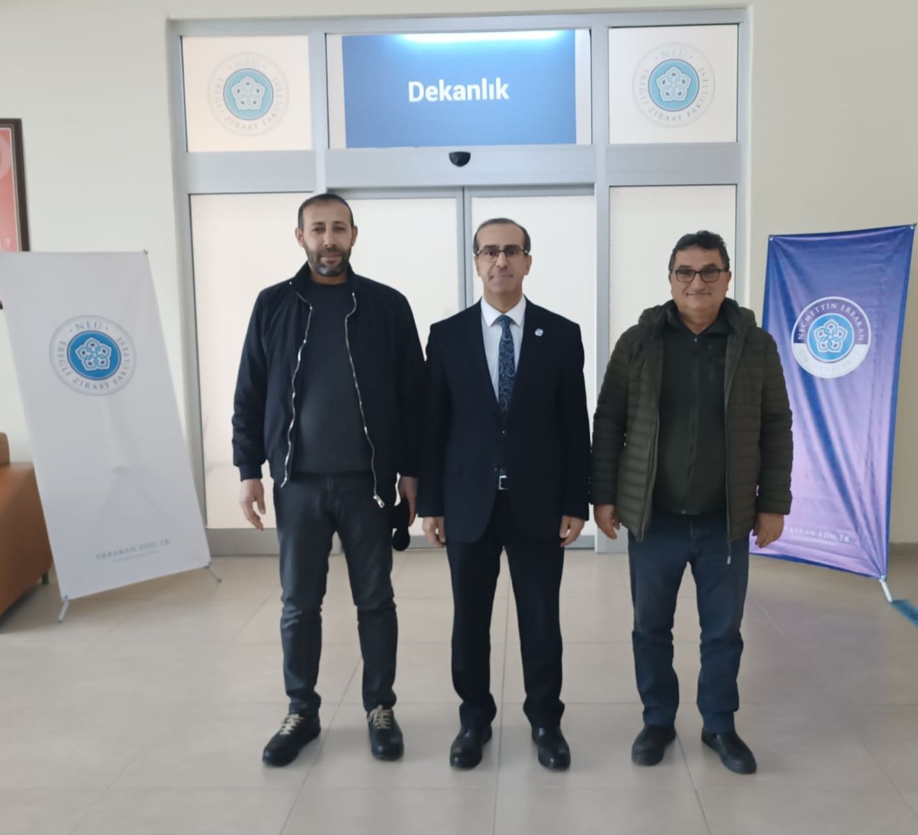 Doğu Akdeniz Tarımsal Araştırma Enstitüsü Önceki Müdürü Sayın Dr. Abdullah Çil ve Şanlıurfa’da faaliyet gösteren Kuran Tarım İşletmesi Sahibi Sayın İbrahim Kuran Fakültemiz Dekanı Sayın Prof. Dr. Yaşar Karadağ’I makamında ziyaret etti.