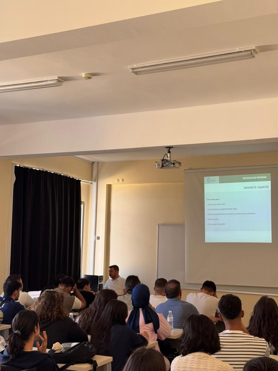 Oryantasyon programına Fakültemiz Dekan Yardımcısı ve Tarla Bitkileri Bölüm Başkanı Doç. Dr. Aras Türkoğlu, Dekan Yardımcısı Dr. Öğr. Üyesi Mehmet Zahid Malaslı, Biyosistem Mühendisliği Bölüm Başkanı Doç. Dr. Sevim Seda Yamaç, Fakültemiz Biyosistem Mühendisilği ve Tarla Bitkileri Bölümü Öğretim Elemanları ve 1. Sınıf öğrencilerimiz katıldı.