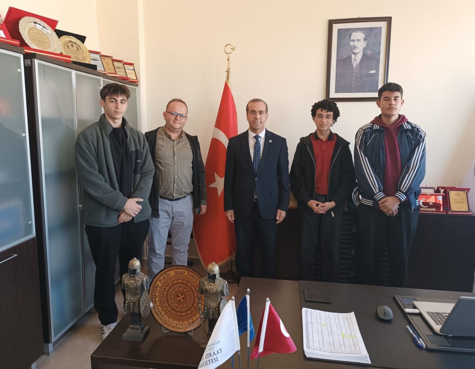 Ereğli Lisesi Coğrafya Öğretmeni Sayın Serol Erdemli ve Öğrencileri Tübitak projeleri görüşmelerinde bulunmak üzere Fakültemiz Dekanı Sayın Prof. Dr. Yaşar Karadağ’ı makamında ziyaret etti.