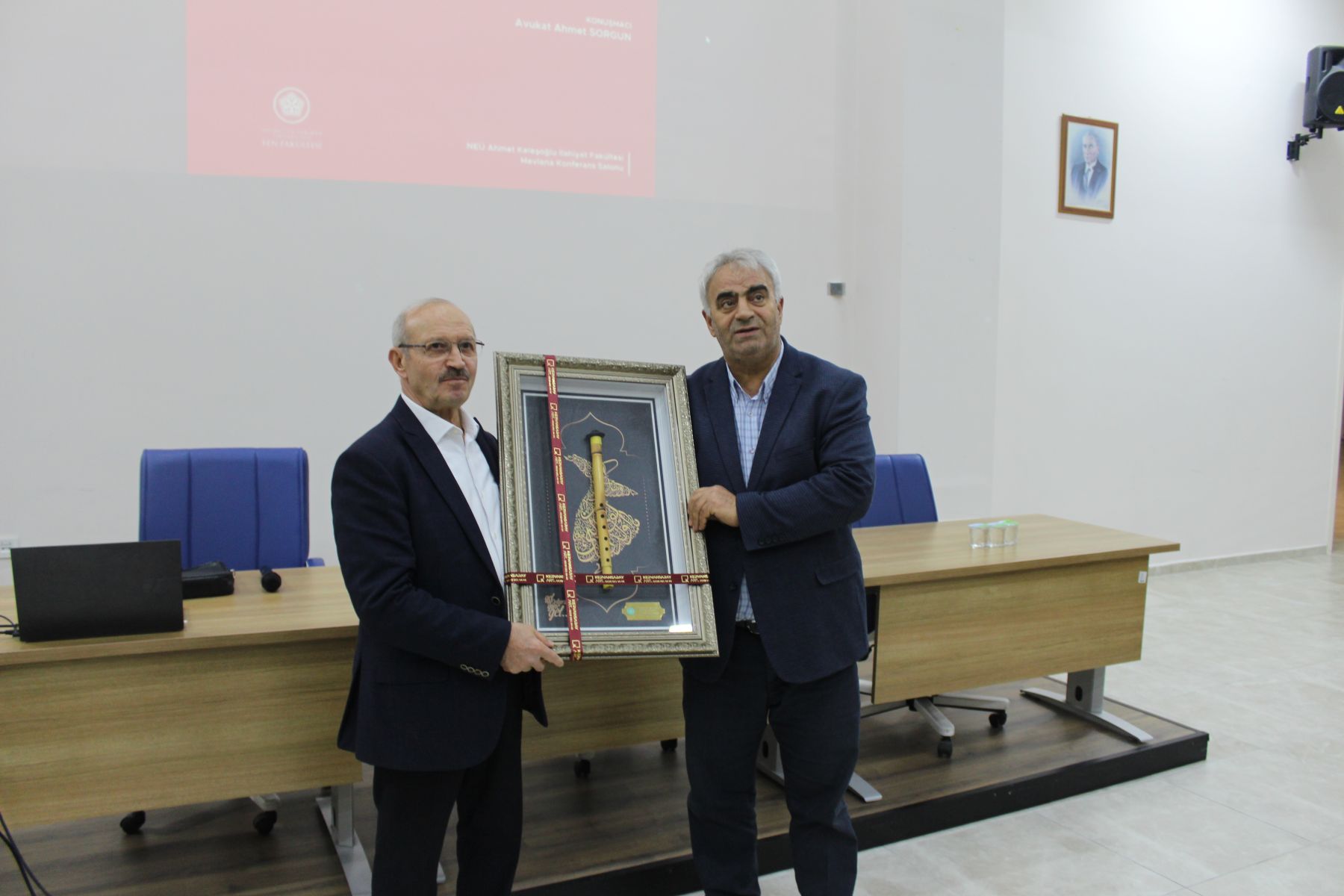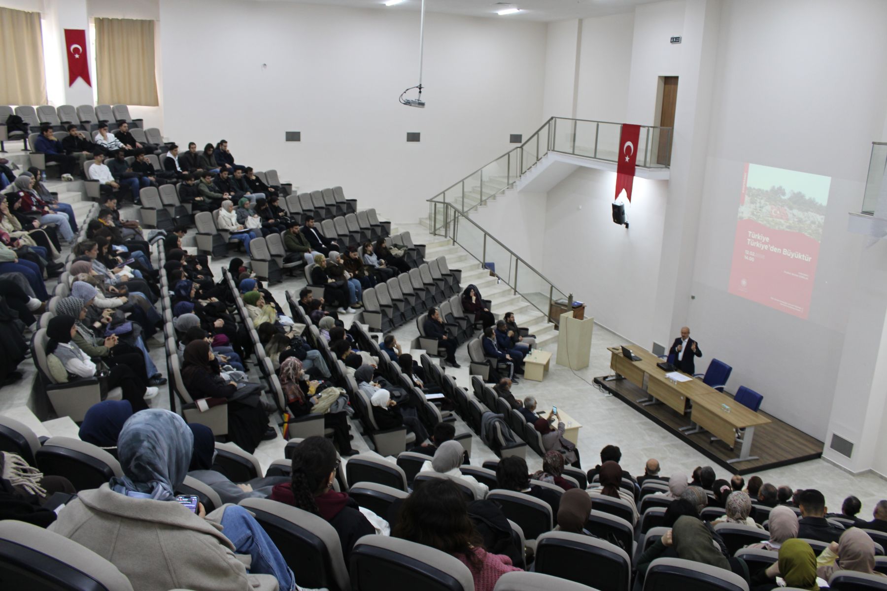 Necmettin Erbakan Üniversitesi Fen Fakültesi öğrencilerimize yönelik olarak, Av. Ahmet Sorgun tarafından “Türkiye Türkiye’den Büyüktür” başlıklı konferans gerçekleştirildi. Programın açılış konuşması, Fen Fakültesi Dekanı Prof. Dr. Bünyamin AYDIN tarafından yapıldı. Dekanımız konuşmasında, konferansın düzenlenmesinde emeği geçenlere teşekkür etti. Konferansta Av. Ahmet Sorgun, etkili ve akıcı anlatımıyla “Türkiye Türkiye’den Büyüktür” perspektifini farklı yönleriyle ele alarak öğrencilerimizle önemli değerlendirmelerde bulundu. Program, öğrencilerimizin yoğun ilgisi ve katılımıyla gerçekleşti. Etkinlik sonunda Dekanımız Prof. Dr. Bünyamin Aydın tarafından Av. Ahmet Sorgun’a günün anısına hediye takdim edildi. Fen Fakültesi olarak, öğrencilerimizin vizyonunu geliştiren bu tür akademik ve kültürel etkinlikleri desteklemeye devam edeceğiz. Katkılarından dolayı Av. Ahmet Sorgun’a teşekkür ederiz.