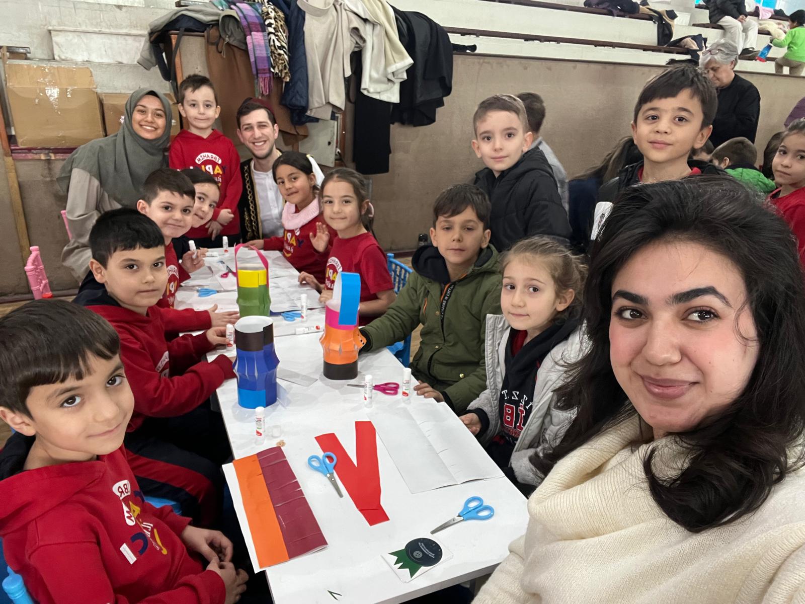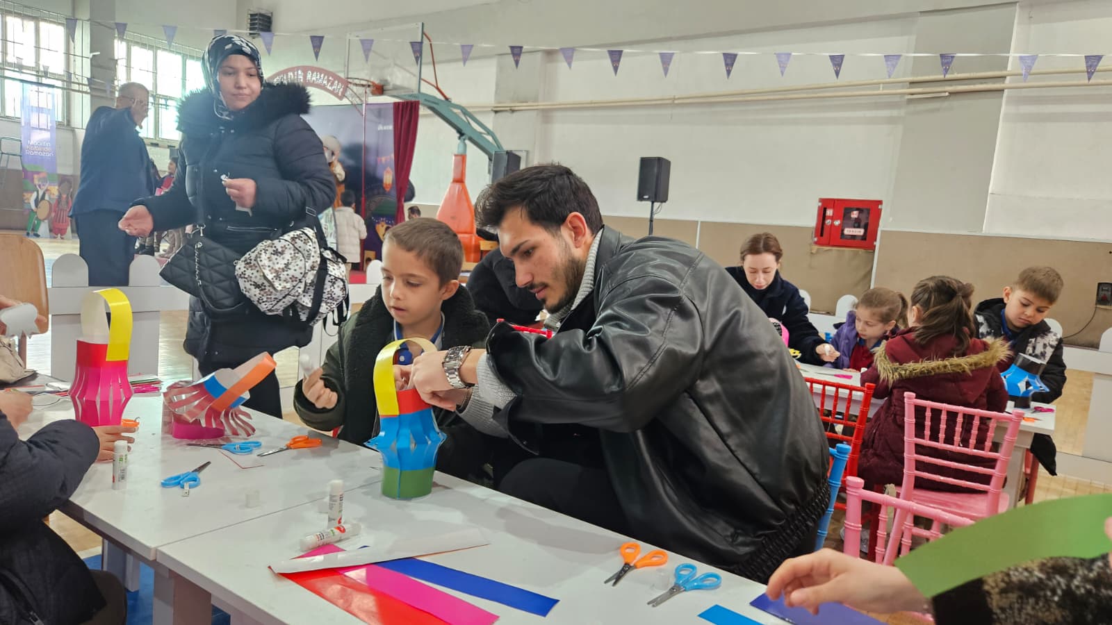 Resim Bölümü 3. ve 4. sınıf öğrencileri, gruplar halinde standa gelen yaklaşık 400 ilkokul öğrencisiyle birebir ilgilenerek çocuklara Ramazan kandili yapım sürecinde rehberlik etti. Öğrenciler, hem sanatsal üretim sürecini çocuklara deneyimletme hem de Ramazan ayının kültürel ve manevi değerlerini aktarma fırsatı buldu.