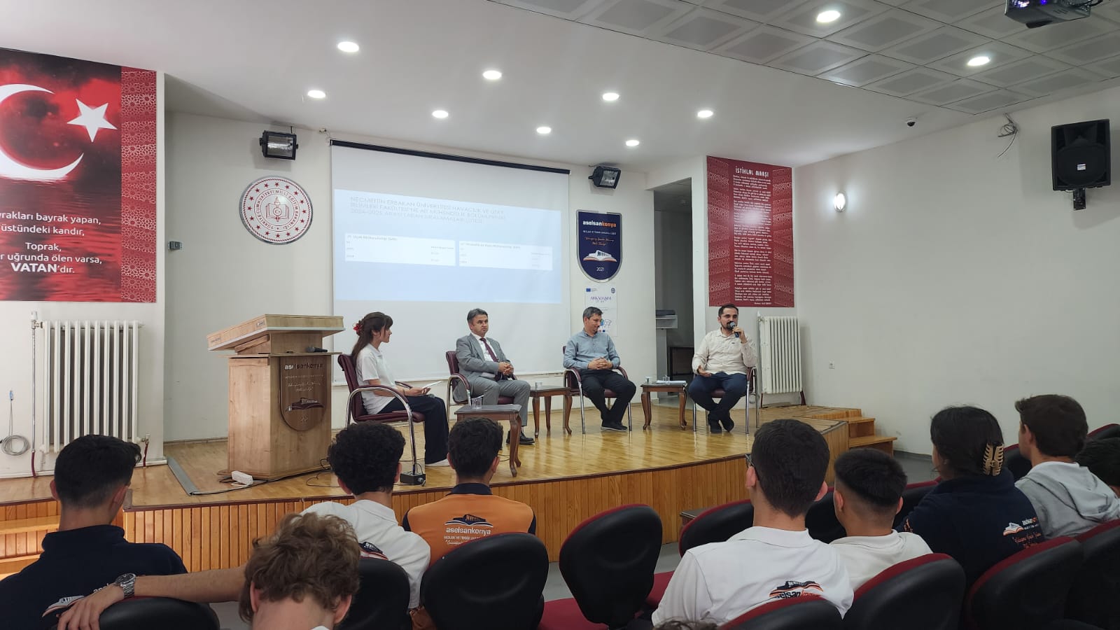 Konya Aselsan Lisesinde Havacılık ve Uzay Bilimleri üzerine söyleşi gerçekleştirildi. Fakültemiz tarafından Konya Aselsan Lisesinde Havacılık ve Uzay Bilimleri üzerine söyleşi gerçekleştirildi. Fakültemiz Dekanı Prof. Dr. Murat DİLMEÇ, Uçak Mühendisliği Bölümü’nden Dr. Öğr. Üyesi Muhammet ÖZTÜRK ve Öğr. Gör. Dr. İbrahim MIZRAK öğrencilere fakültemiz ve havacılık uzay ile ilgili bilgiler sundu. Öğrencilerin havacılık ve uzay bilimleri alanına dair merak ettiklerini doğrudan akademisyenlerden öğrenme fırsatı bulduğu etkinlik, büyük bir ilgiyle karşılandı. Bölüm dersleri, kariyer olanakları ve akademik hayat hakkında detaylı bilgiler verilerek öğrencilerin geleceğe dair vizyonlarını geliştirmelerine katkı sağlandı.