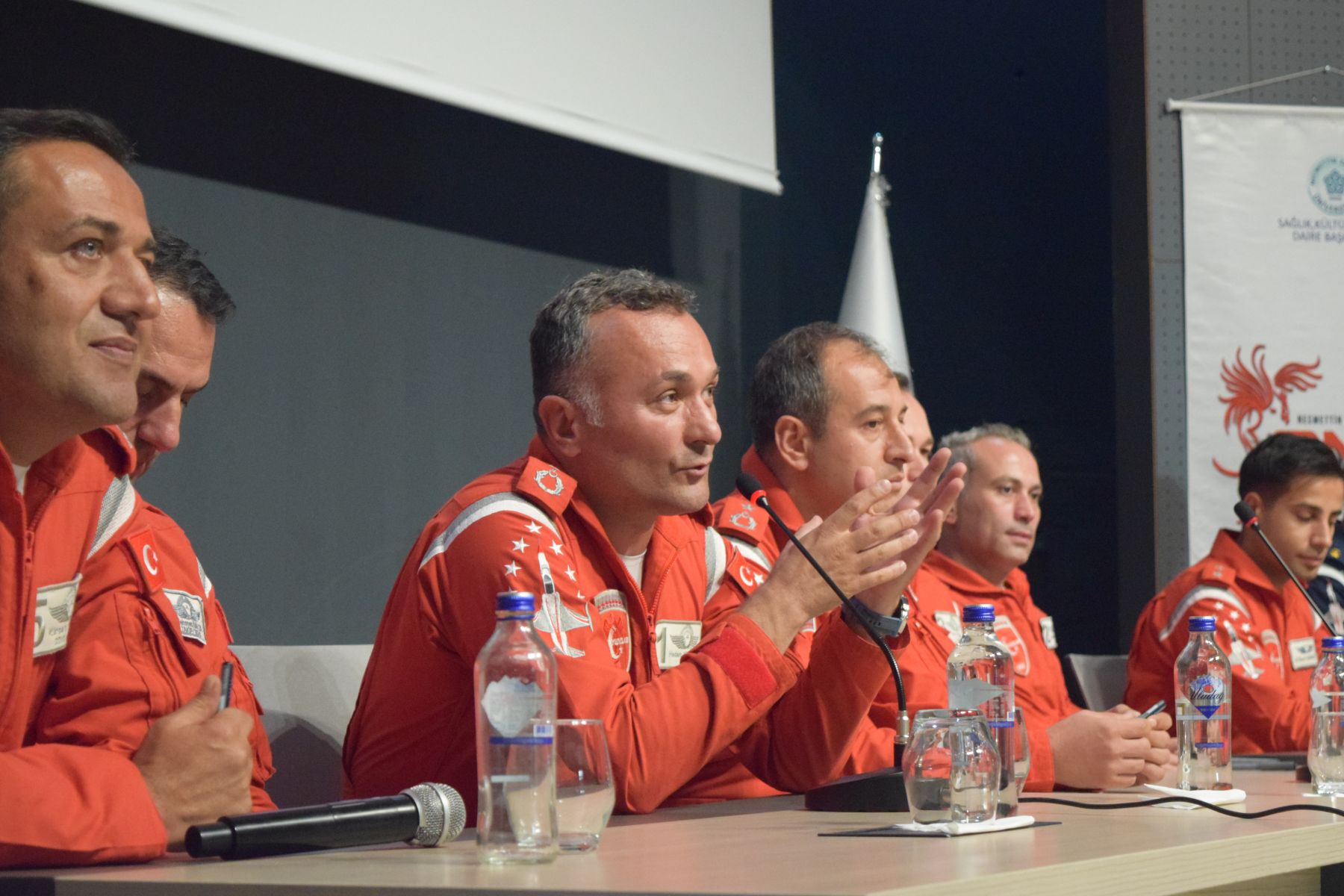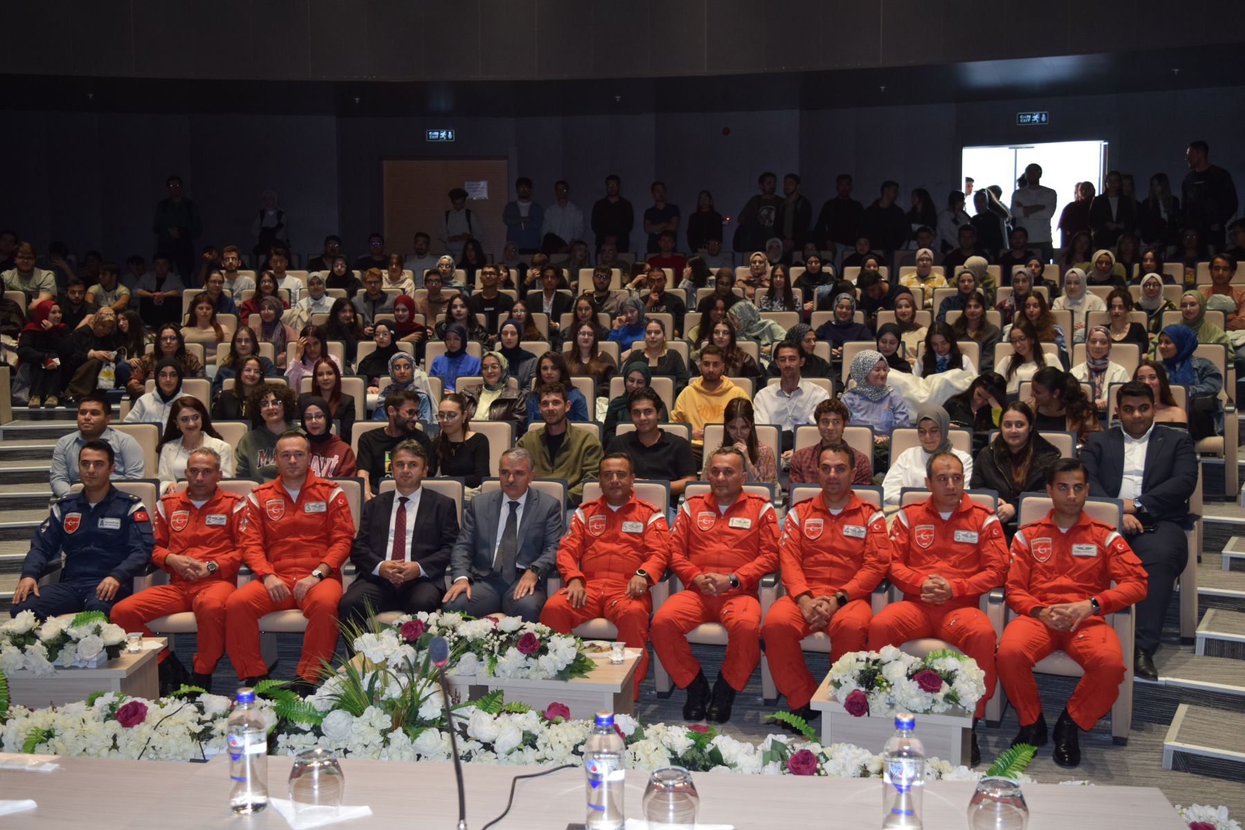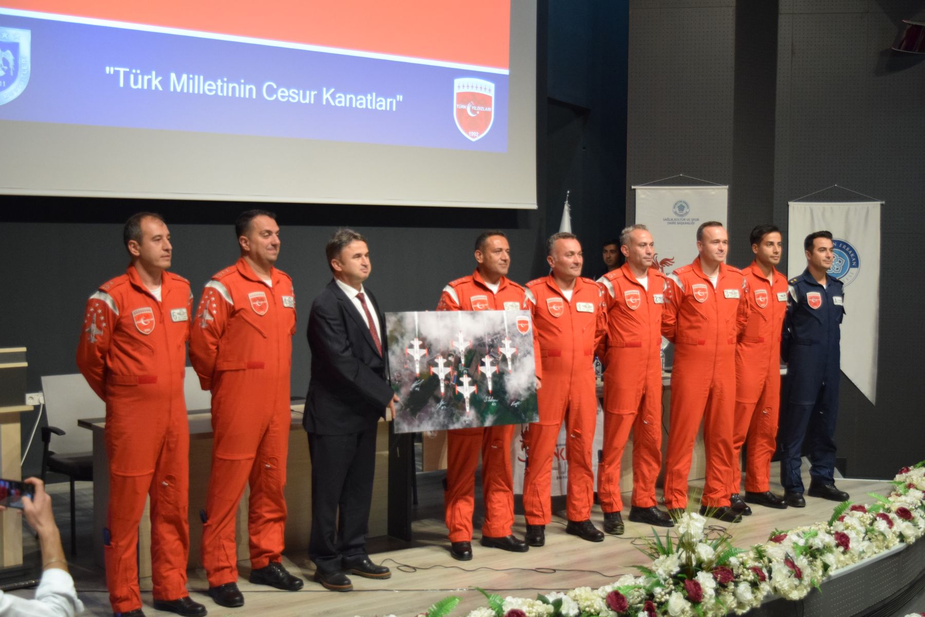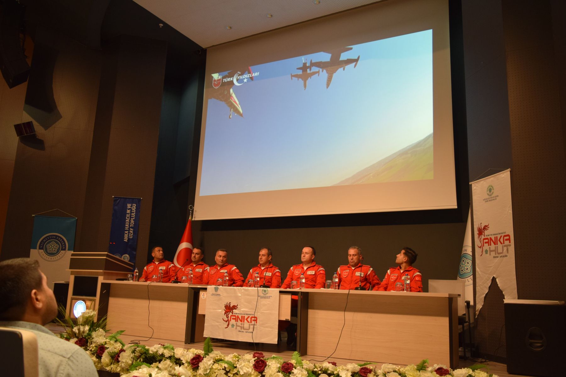 Türk Hava Kuvvetlerinin gösteri takımı “Türk Yıldızları” ekibi, Fakültemiz Anka Havacılık ve Uzay Topluluğu’nun düzenlediği etkinlikte öğrencilerle bir araya geldi. Türk Yıldızları ekibi Fakültemizde katıldığı programda öğrencilere Türk Yıldızları’nı tanıtarak, merak edilen konular hakkında bilgiler verdi. Türk Yıldızları’nın dünyadaki yeri, Türk Yıldızları’nın marka değeri gibi konuları içeren bir sunum yapıldı. Konuşmaların ardından Türk Yıldızları ekibi, öğrencilerin sorularını cevapladı. Program, hediye ve plaket takdiminin ardından fotoğraf çekimi ile sona erdi.