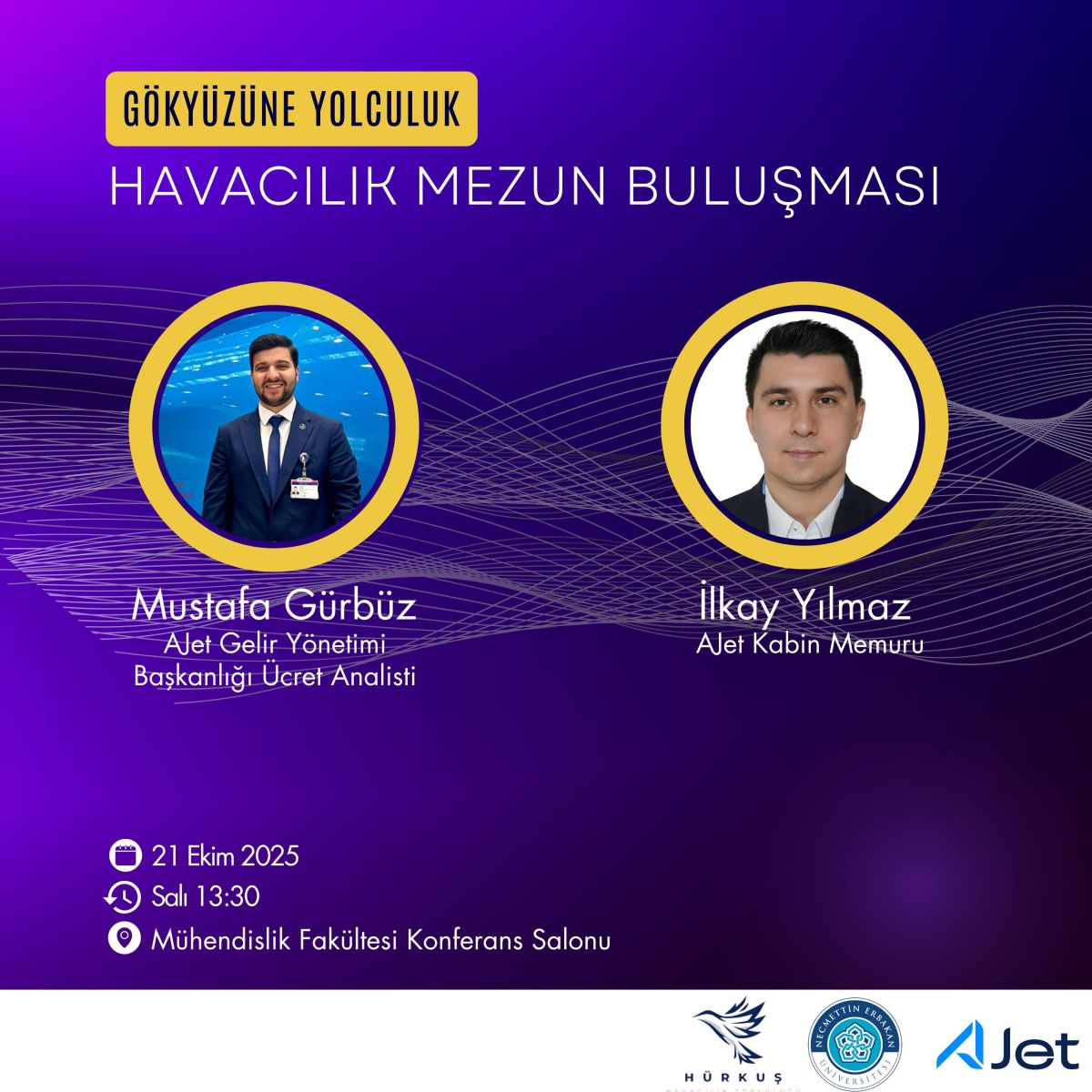 21.10.2025 tarihinde saat 13.30'da Havacılık Yönetimi Bölümü öğrencilerine yönelik "kariyer günleri" etkinliği düzenlenecektir. Tüm öğrencilerimiz davetlidir.