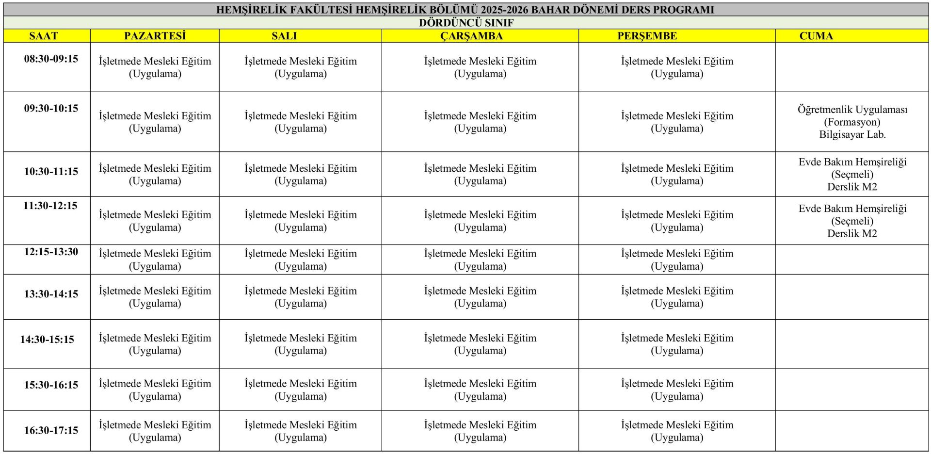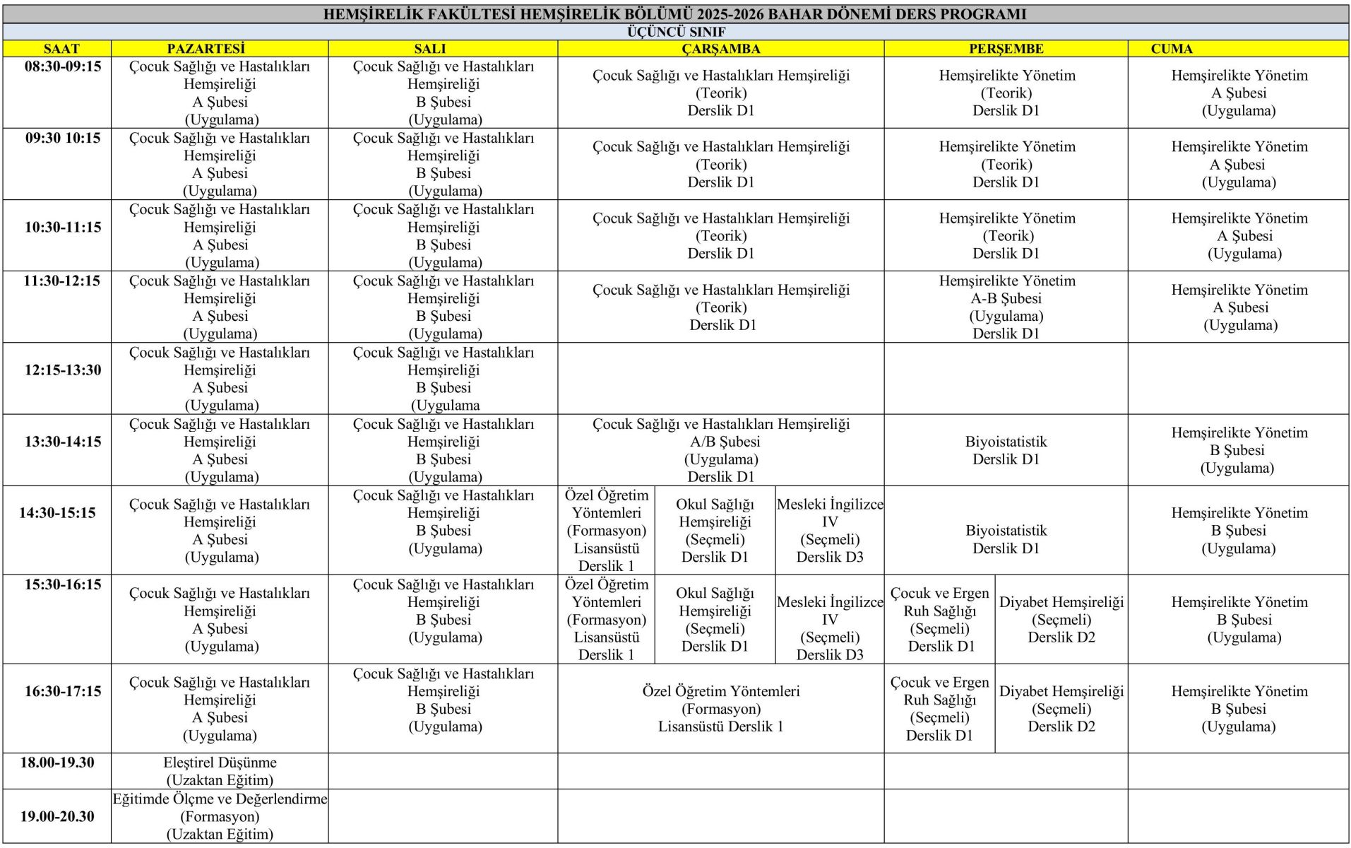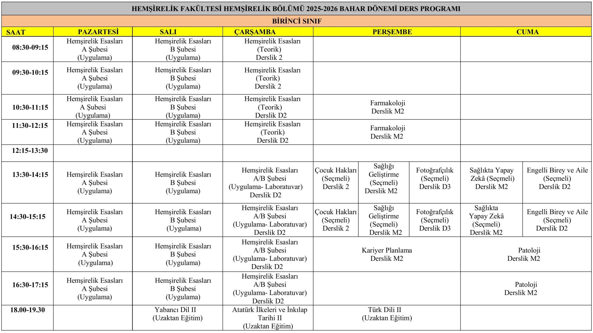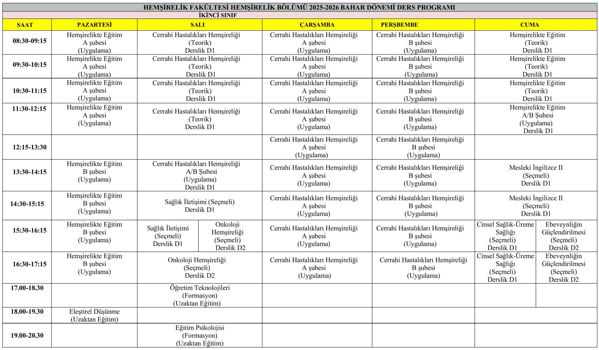 2025-2026 Bahar Yarıyılı Ders Programı (GÜNCEL)