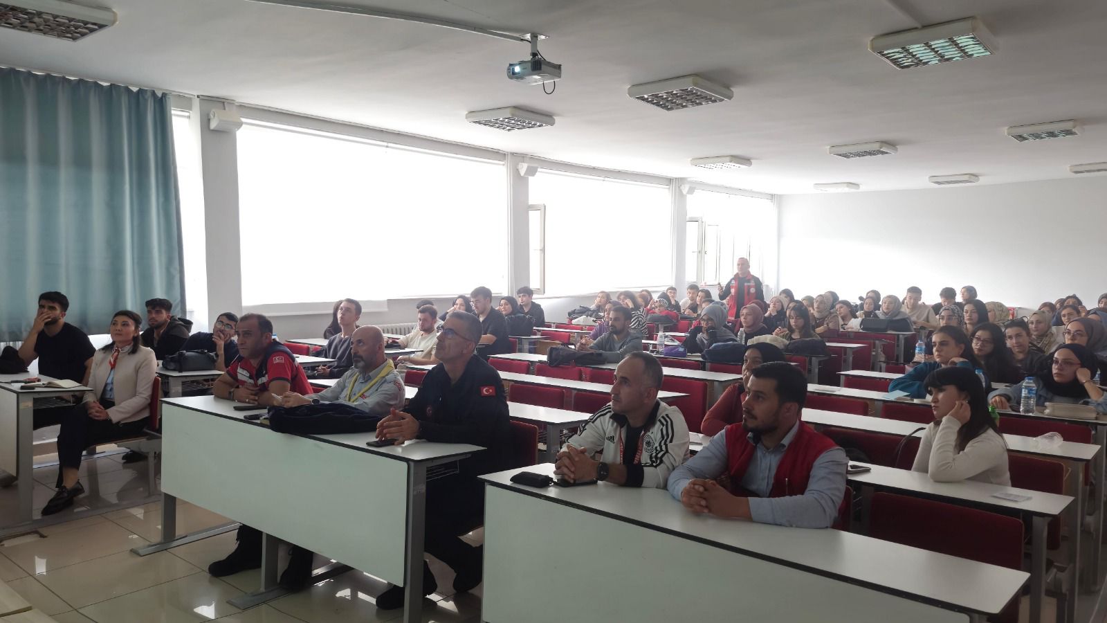 Afet Yönetiminde Yerel Örgütlenme II: AKUT Örneği konferansı Halk Sağlığı Hemşireliği Anabilim Dalı tarafından 24 Ekim 2025 Cuma günü 15.30 'da Fakültemizin Afet Kültürü dersi kapsamında gerçekleşmiştir. Etkinlikte Konya Kızılay İl Başkanlığı MEB AKUT arama kurtarma gönüllüsü Alper Can, Hasan Zeybek, Hasan Tullu, Adem Ertekin, Hakan Arıkan sunumu gerçekleştirirken, Öğr.Gör.Dr.Kübra Sultan Dengiz moderatörlüğünü yürütmüştür. Etkinlik sonunda Kızılay İl Başkanlığı tarafından öğrencilerimize ikramlık ve hediyeler dağıtılmıştır. Ayrıca öğrencilerimizden orman gönüllüsü ve itfaiye gönüllüsü olan birer öğrencimize hediyeleri takdim edilmiştir.