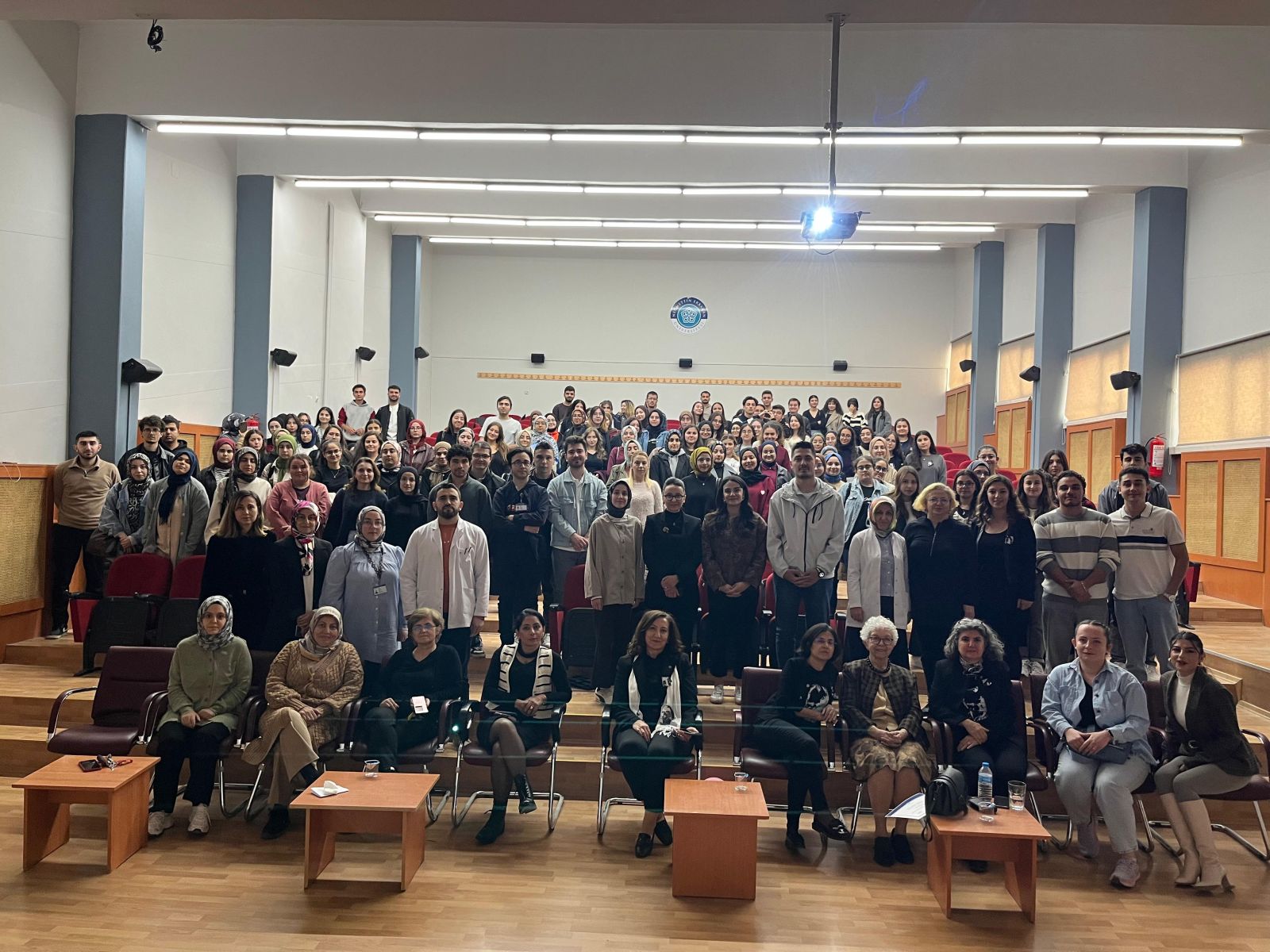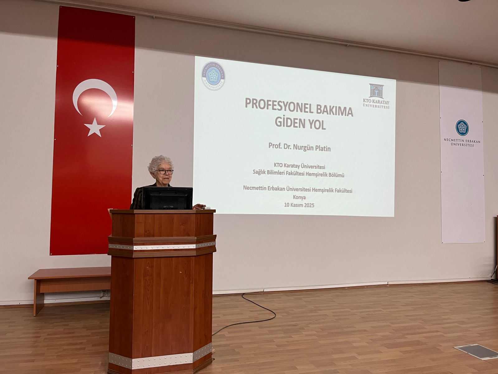 Hemşirelik Fakültesi Hemşirelik Esasları Anabilim Dalı tarafından düzenlenen "Bakıma Giden Yolda Profesyonellik" etkinliği 10 Kasım 2025 tarihinde akademik personel, lisans ve lisansüstü öğrenciler olmak üzere toplam 148 katılımcı ile yapılmıştır. Etkinlikte Prof. Dr. Nurgün PLATİN hoca, hemşirelik eğitim sürecinde bakım ve profesyonellik konuları ile ilgili bilgi ve deneyimlerini paylaşmıştır. Etkinliğimiz katılımcıların soruları ile tamamlanmıştır. Hocamıza teşekkür ederiz.