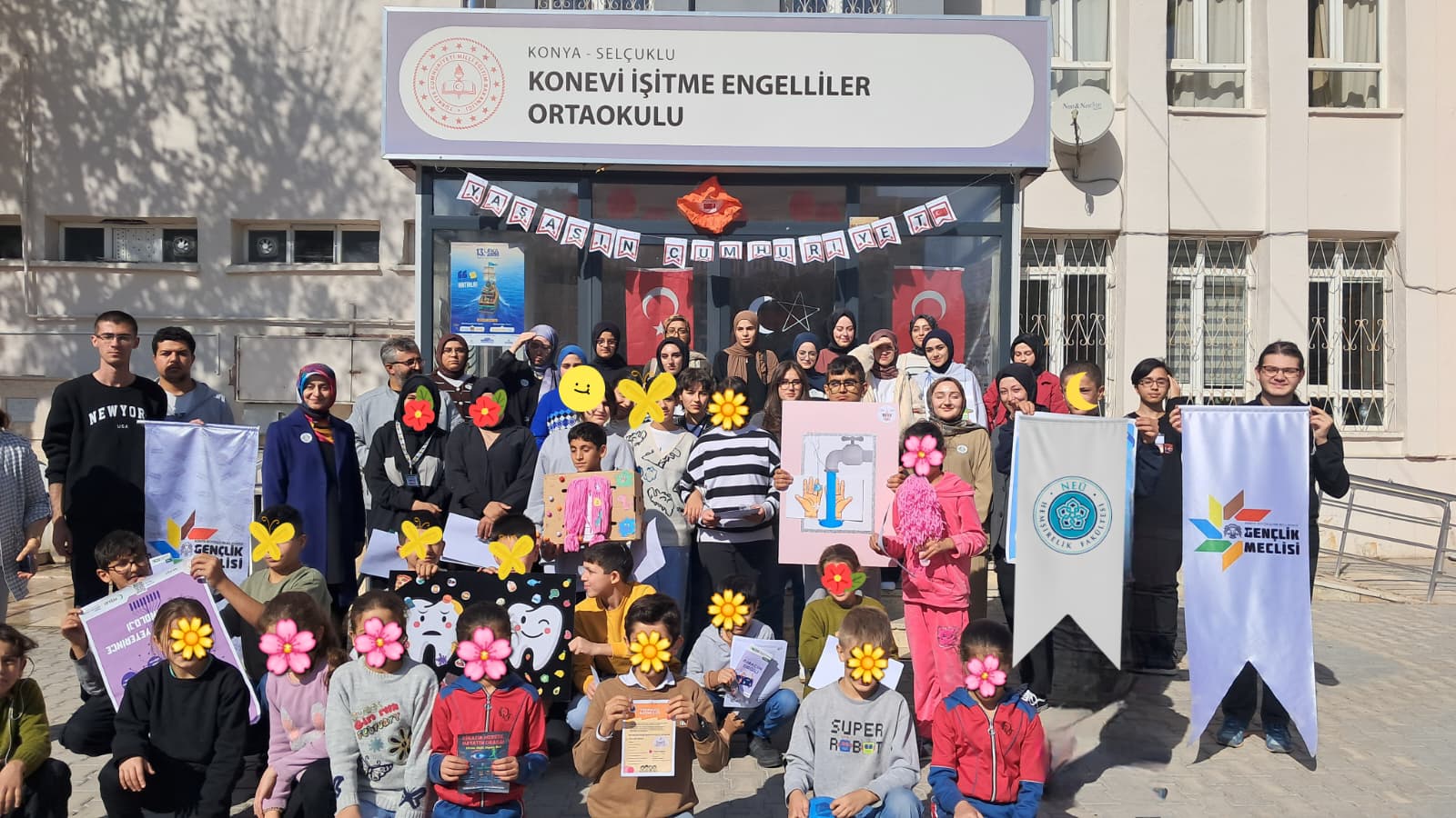 Engelliler Haftası kapsamında Hemşirelikte Öğretim Anabilim Dalı tarafından, toplumda farkındalık oluşturmak ve dezavantajlı grupların yaşam kalitesini artırmaya katkı sağlamak amacıyla İşitme Engelliler Okulu’nda kapsamlı bir eğitim programı düzenlendi. Dr. Öğr. Üyesi Aliye ÇAYIR’ ın eğitimci olduğu etkinlik, hem “genel vücut hijyeni” hem de “teknoloji bağımlılığı” konularında öğrencilere bilgi kazandırmayı hedefleyen interaktif bir içerikle gerçekleştirildi. İlkokul ve ortaokul düzeyindeki öğrencilerin aktif katılımıyla gerçekleşen eğitimlerde, temel hijyen alışkanlıklarının neden önemli olduğu, sağlıklı yaşam davranışlarının günlük rutine nasıl entegre edilebileceği ve teknoloji kullanımında dikkat edilmesi gereken noktalar öğrencilere örneklerle aktarıldı. Eğitimin kalıcı etkisini artırmak amacıyla süreç yalnızca öğrencilerle sınırlı tutulmadı; “velilerin de eğitime dahil edilmesiyle aile temelli bir farkındalık yaklaşımı” benimsendi. Böylece verilen bilgilerin ev ortamında da desteklenmesi ve sürdürülebilir davranış değişikliği oluşturulması hedeflendi. Program süresince, “Gönüllülük Çalışmaları Dersi” alan üniversite öğrencileri hem genel vücut hijyeni hem de teknoloji bağımlılığı konularının pekişmesine katkı sağlayan çeşitli etkinlikler hazırladı. Uygulamalı etkinlikler ve eğlenceli öğrenme yöntemleri sayesinde öğrenciler, bilgileri deneyimleme öğrenme fırsatı buldu. Etkinliğe ayrıca Konya Gençlik Meclisi Üyesi ve NEÜ Hemşirelik Fakültesi Temsilcisi Emine Yılmaz da katılarak öğrencilere çeşitli hediyeler takdim etti. Bu katkı, öğrencilerin motivasyonunu artırarak etkinliğe ayrı bir değer kattı. Bu çalışma, “Sürdürülebilir Kalkınma Amaçları” ile de güçlü bir biçimde örtüşmektedir. SKA 3: Sağlık ve Kaliteli Yaşam kapsamında sağlıklı yaşam alışkanlıklarının geliştirilmesine, SKA 4: Nitelikli Eğitim doğrultusunda kapsayıcı ve eşitlikçi öğrenme fırsatlarının artırılmasına, SKA 10: Eşitsizliklerin Azaltılması amacıyla engelli bireylerin sosyal hayata tam katılımına, SKA 17: Amaçlar İçin Ortaklıklar hedefiyle kurumlar, öğrenciler, gönüllüler ve aileler arasındaki iş birliğine katkı sağlanmıştır. Engelliler Haftası vesilesiyle gerçekleştirilen bu anlamlı etkinlik, hem toplumda farkındalık oluşturmuş hem de öğrenciler için eğitici, kapsayıcı ve motive edici bir öğrenme ortamı yaratmıştır. Üniversitemiz, toplum sağlığı ve sosyal sorumluluk bilinciyle bu tür etkinlikleri sürdürülebilir hale getirmeye kararlılıkla devam edecektir. Etkinliğe destek veren herkese teşekkür ederiz.