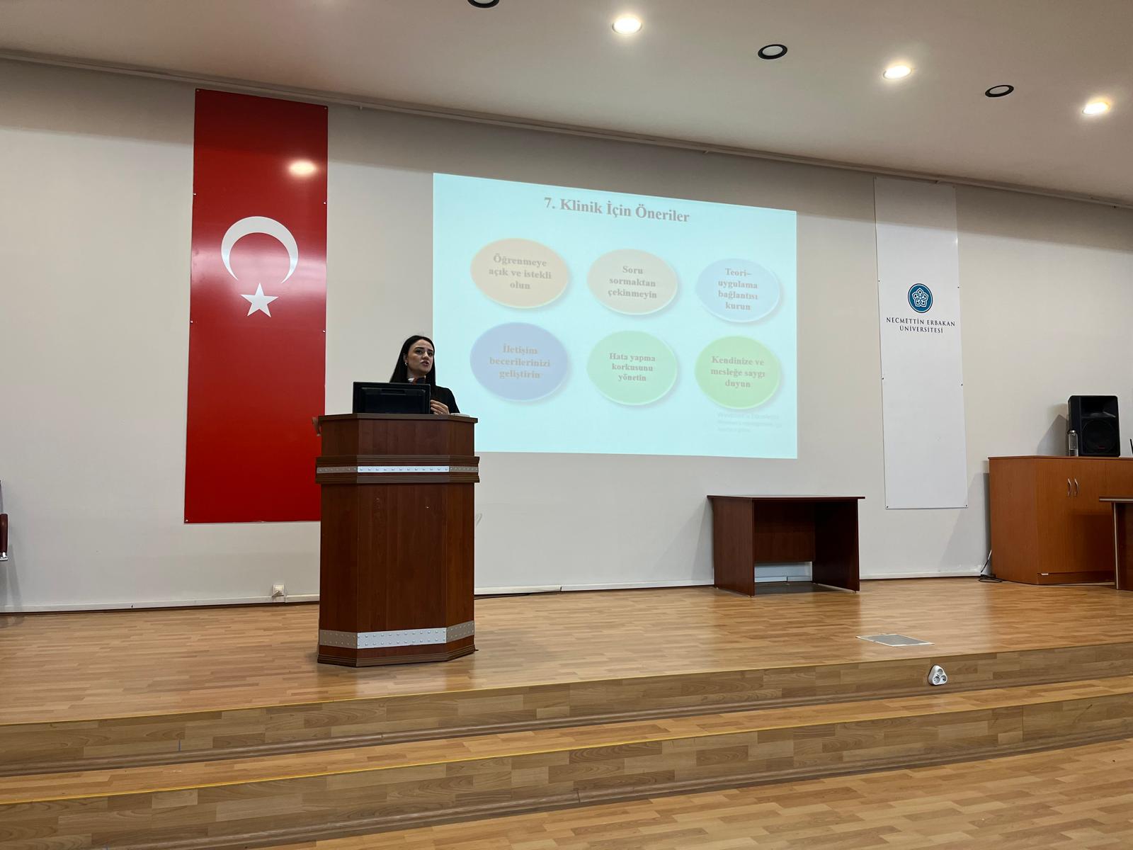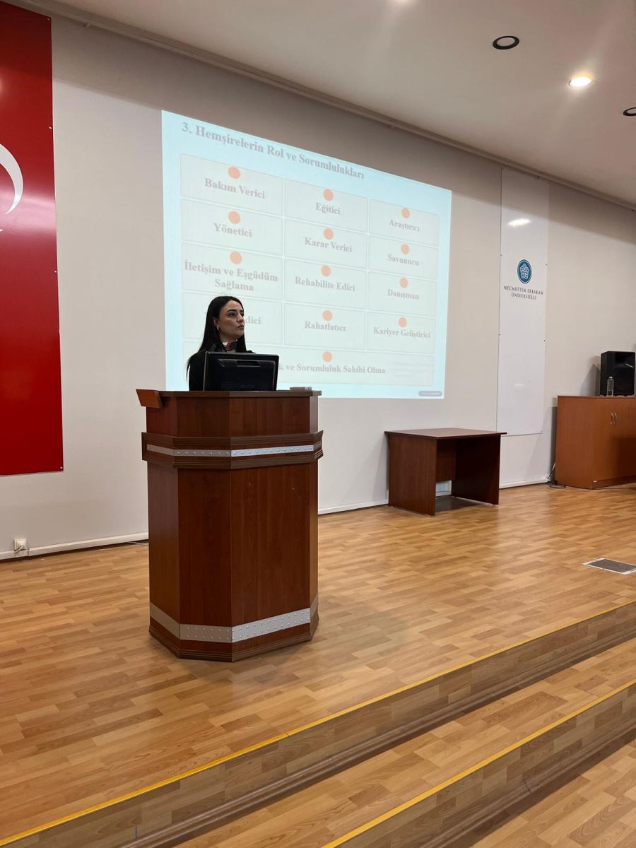 Hemşirelik Esasları Anabilim Dalı tarafından düzenlenen Hemşirelik Mesleğine İlk Adım etkinliği 2-3 Şubat 2026 tarihinde lisans ve lisansüstü öğrencilerden 117 katılımcı ile tamamlanmıştır. Etkinlikte Uzman Hemşire Saliha SIRIM, hemşirelik, hemşirenin rol ve sorumlulukları, klinik uyum ve mesleki uygulamada klinik öneriler konuları ile ilgili bilgi ve deneyimlerini paylaşmıştır. Etkinliğimiz katılımcıların soruları ile tamamlanmıştır. Sayın Sırım’ a katkılarından dolayı teşekkür ederiz.