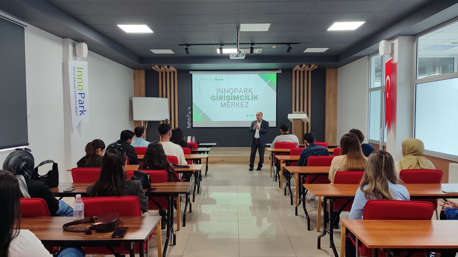 Arge Projeleri ve İş Geliştirme uzmanı Sayın Ertan KANIK eşliğinde InnoPark Konya Teknoloji ve Geliştirme Bölgesi gezisi başladı. Sayın KANIK öğrencileri bir fikrin hayata geçirilmesi ve TÜBİTAK 1512 Bireysel Genç Girişim (BiGG) Destek Programı konusunda bilgilendirdi. İnnoPark içerisinde yer alan bazı firmaların kendilerini tanıtmalarının ardından İnnoPark Bölgesi gezilerek gezi programı tamamlandı. Öğrenciler için girişimcilik ve inovasyonla ilgili bilgili ve faydalı bir etkinlik oldu.
