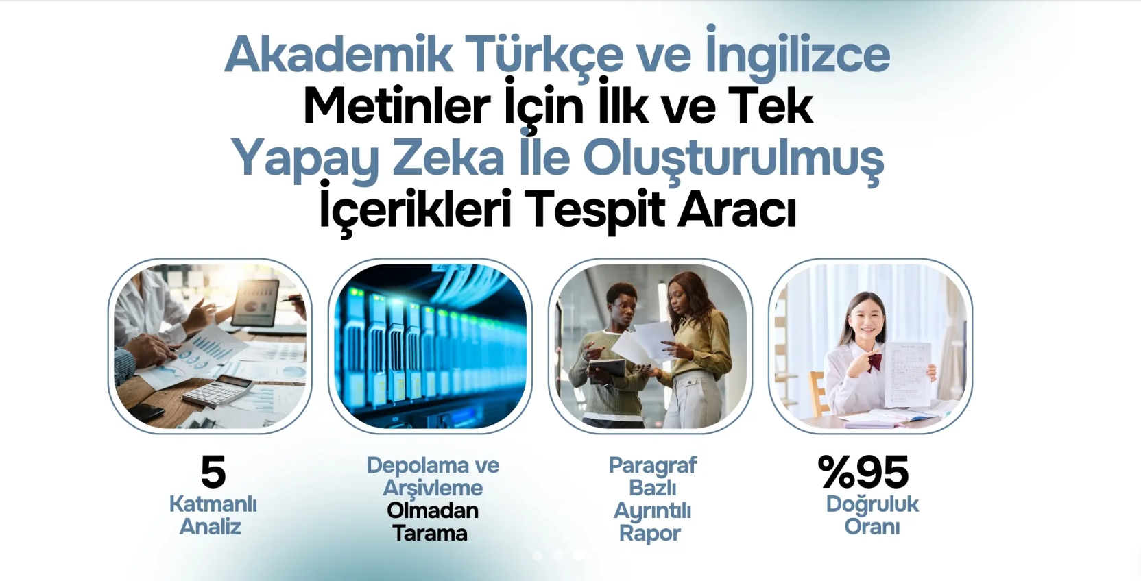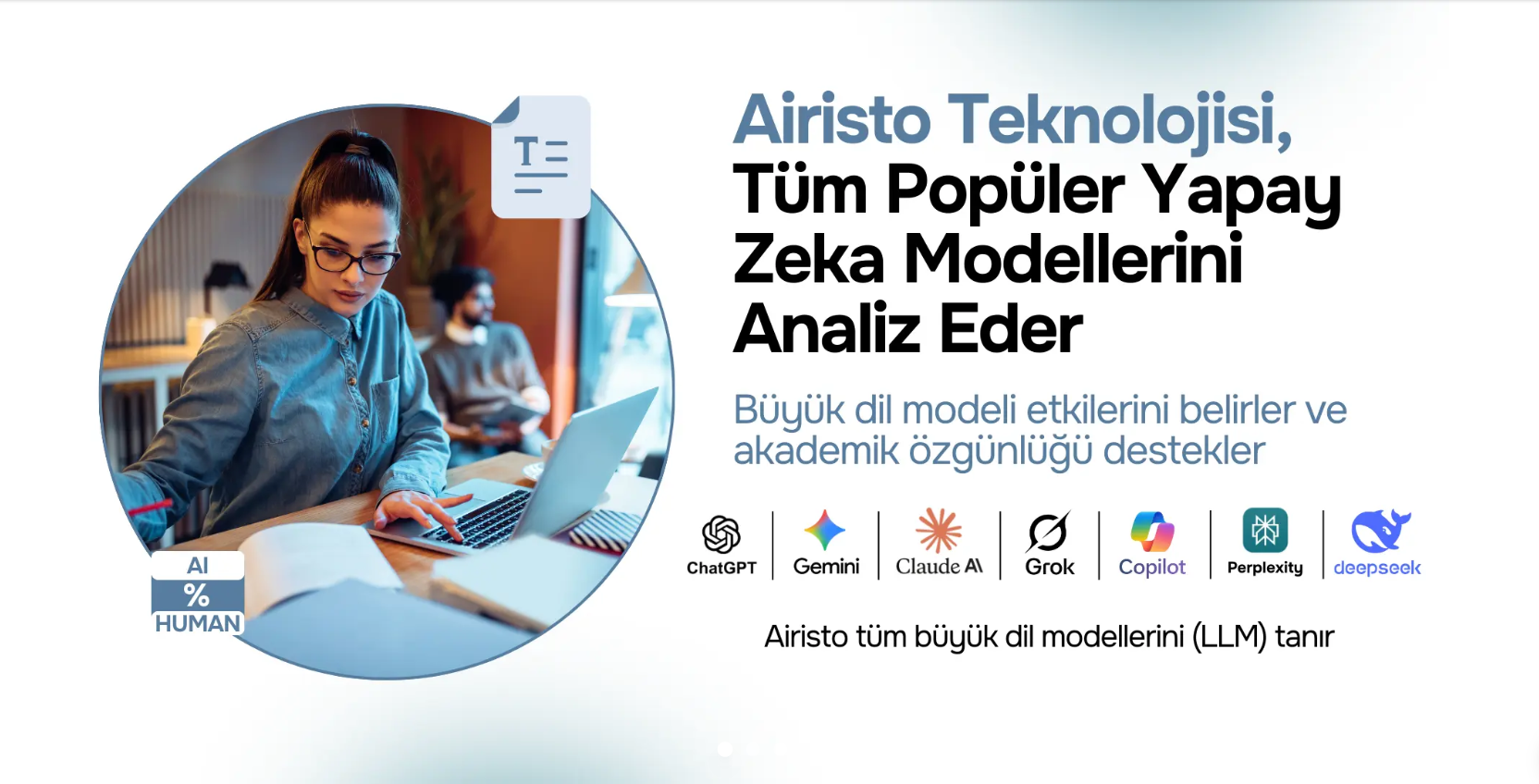 Airisto.ai Deneme Erişimine açılmıştır. Airisto, tamamen yerli kaynaklarla geliştirilmiş bir yapay zekâ içerik tespit aracıdır. Türkçe ve İngilizce akademik metinleri (tez, makale, seminer, bildiri vb.) çok katmanlı yöntemlerle incelemekte ve “olası” yapay zekâ üretimi izlerini şeffaf, anlaşılır çıktılarla rapor almaktadır. @erbakan.edu.tr uzantılı kurumsal e-posta adresinizle kayıt oluşturarak kullanmaya başlayabilirsiniz. Sadece akademisyenler kullanabilir. Her akademisyene 2 analiz (doküman yükleme) hakkı tanımlanmıştır.