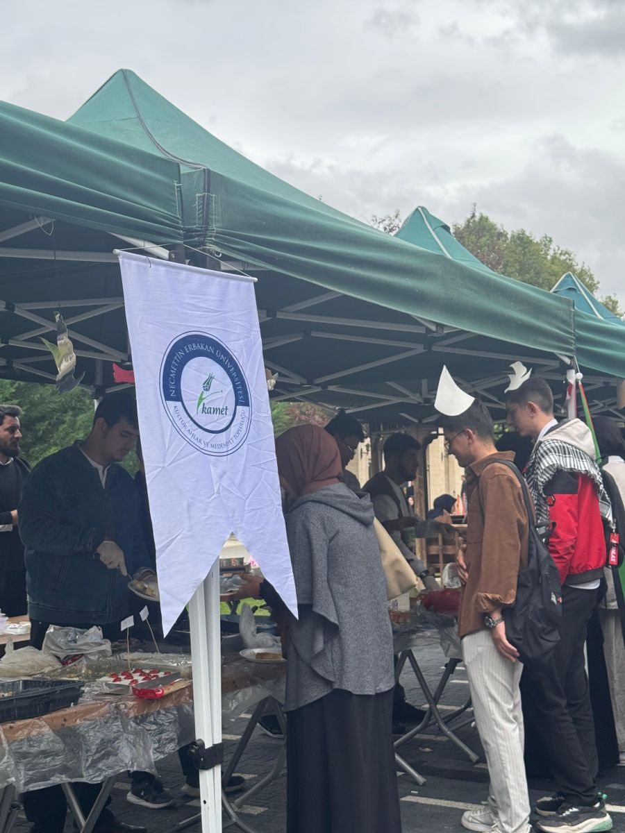| Gazzeye destek amaçlı NEÜ İlahiyat fakültesi C blok Kongre Merkezi bahçesinde hayır çarşısı kuruldu. Topluluk üyelerimizden temin ettiğimiz yiyecekler ve çeşitli filistin temalı ürünlerin satışı gerçekleştirildi. Elde ettiğimiz gelir Gazze davasına destek olmak adına vakfedildi. |
