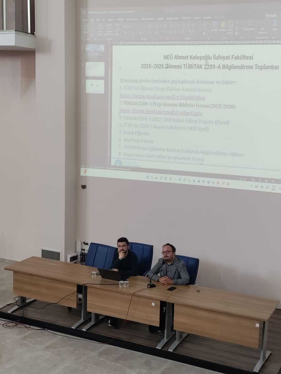 Dekan yardımcılarımız Doç. Dr. Mustafa Derviş Dereli ve Doç. Dr. İrfan Erdoğan, TÜBİTAK 2209 Üniversite Öğrencileri Araştırma Projeleri kapsamında proje başvurusu yapmayı düşünen öğrencilerimize, fakültemizde uygulamaya konulan Proje Destek Birimi çerçevesinde bilgilendirme sunumu yaptılar.