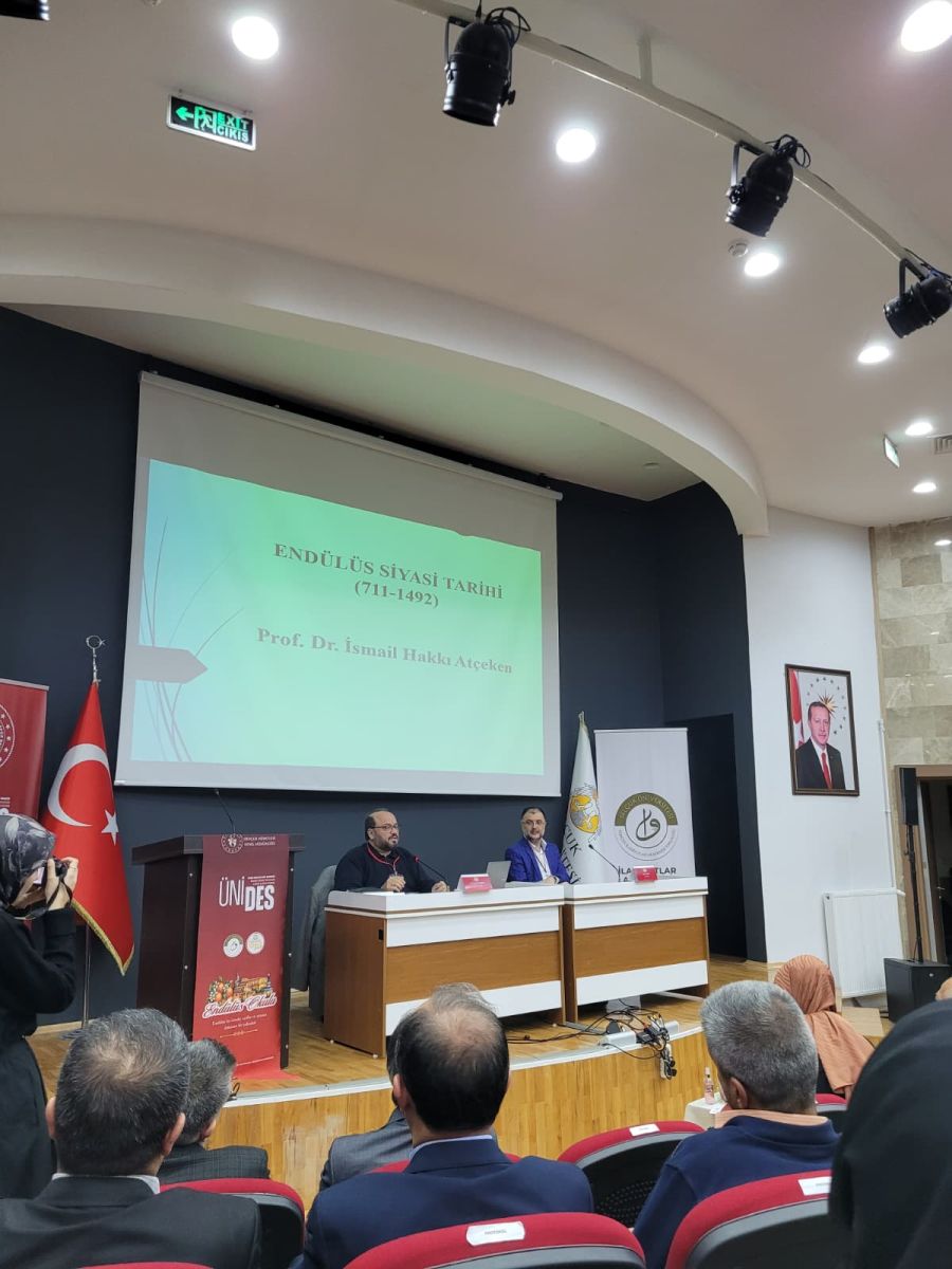 Endülüs Siyasi tarihi başlıklı konuşmasında İsmail Hakkı Atçeken hocamız Endülüs'ün fethi ve kurulan devletler hakkında bilgi verdi. 1492 sonrasındaki güç mücadeleleri ve sonrasında Müslümanların Engizisyon mahkemelerinde maruz kaldıkları işkencelerden bahsetti. Tüm bu tarihsel süreçten çıkarılması gereken derslere vurgu yaparak konuşmasını tamamladı.