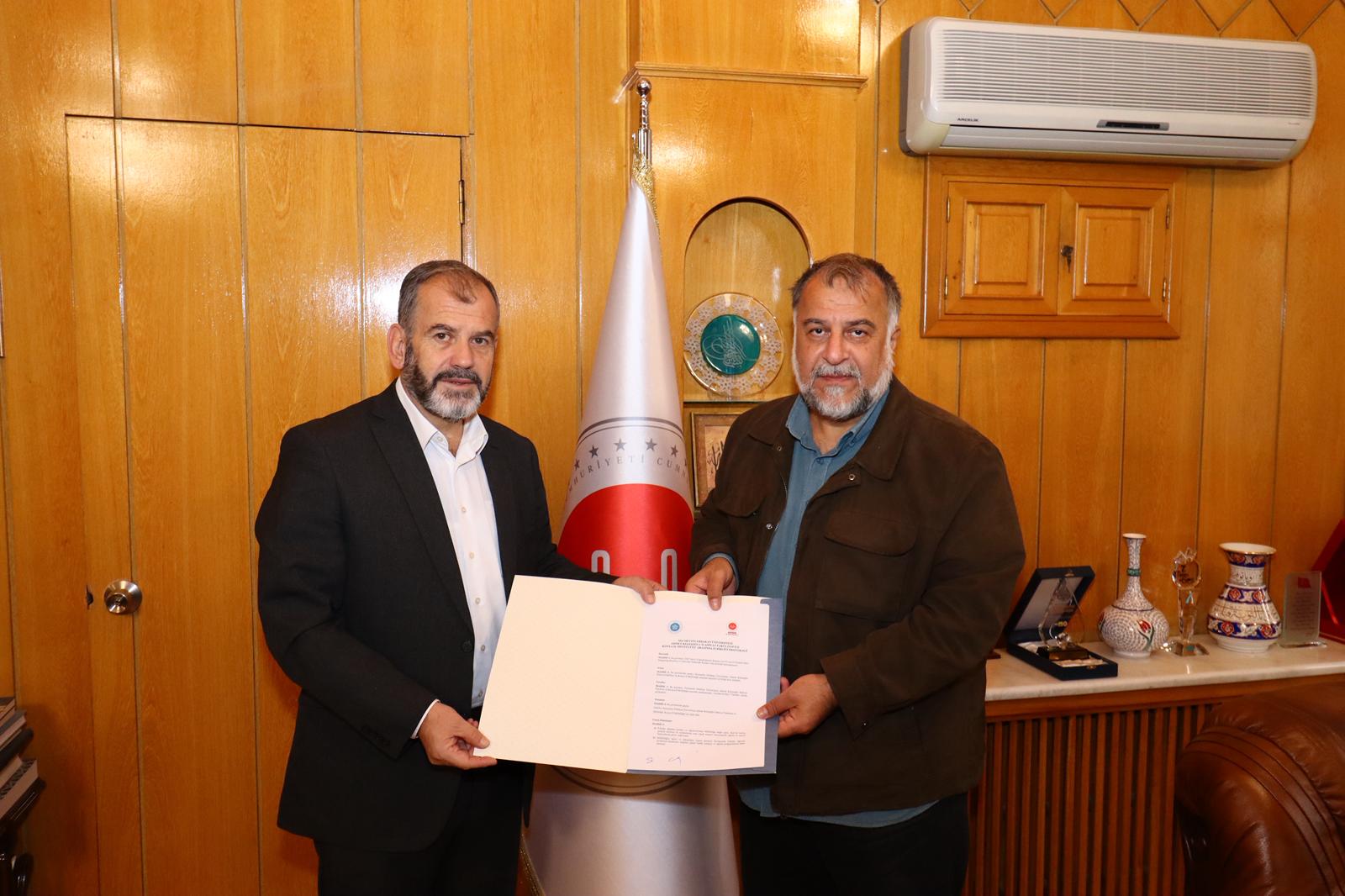 Dekanımız Prof. Dr. Kamil Güneş ile fakültemiz öğretim üyesi Konya İl Müftüsü Prof. Dr. Ali Öge işbirliği protokolü imzaladılar.