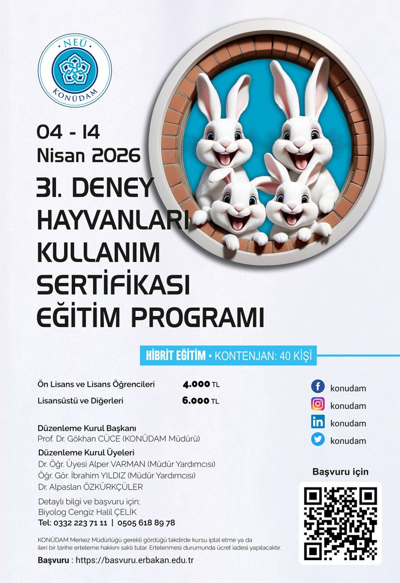 31. Deney Hayvanları Kullanım Sertifikası Eğitim Programı (04 - 14 Nisan 2026)