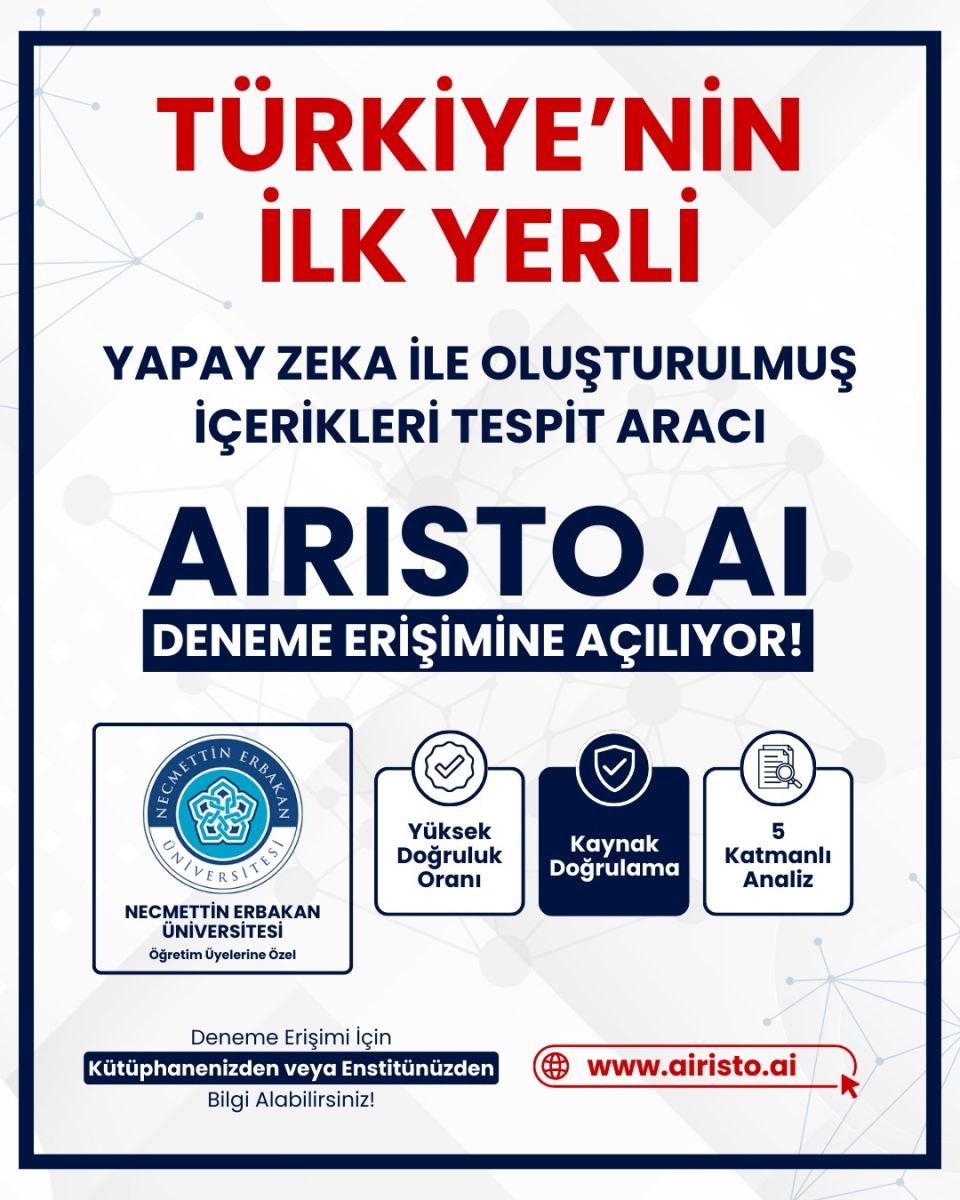 Airisto, tamamen yerli kaynaklarla geliştirilmiş bir yapay zekâ içerik tespit aracıdır.