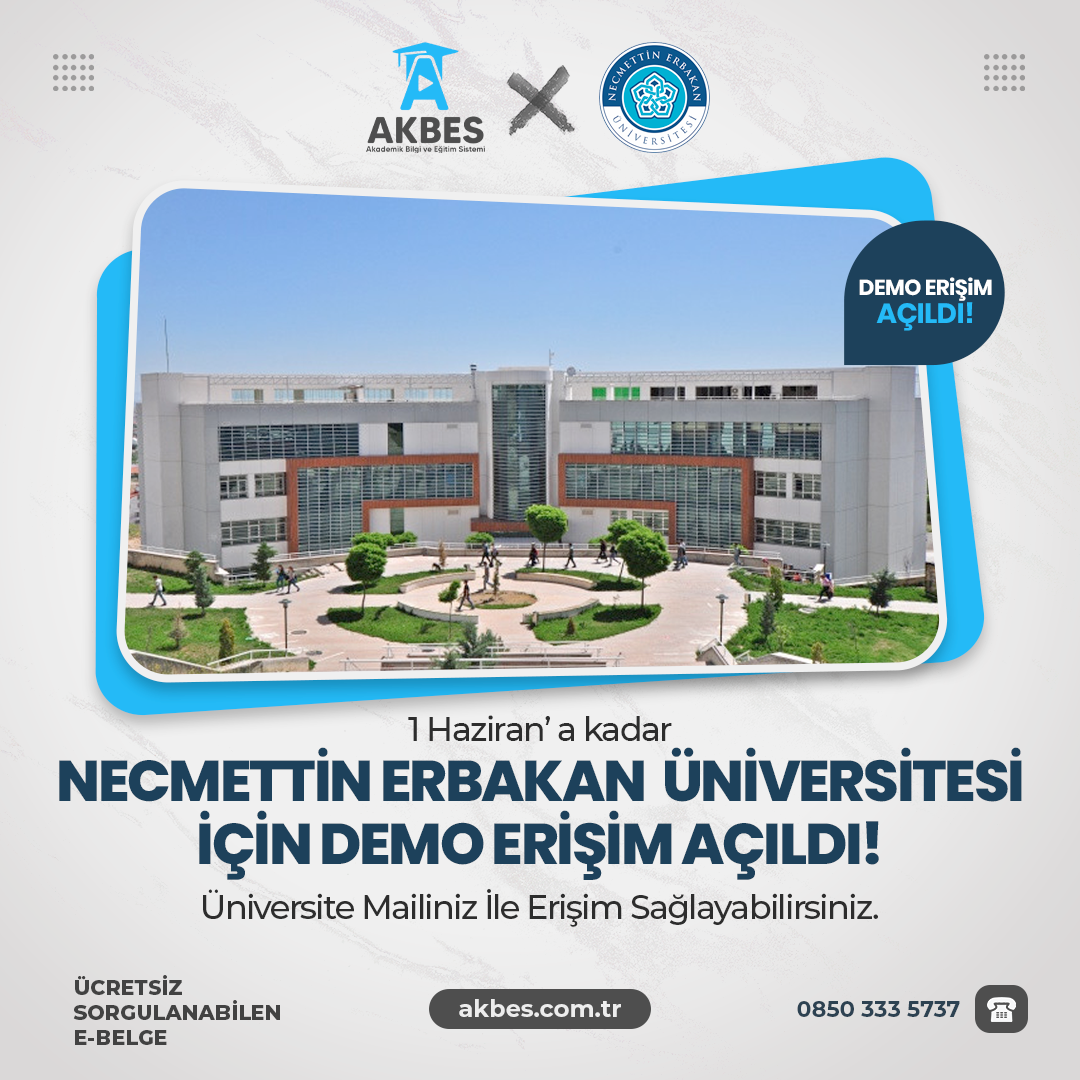 AKBES (Akademik Bilgi ve Eğitim Sistemi) veritabanı 1 Haziran 2026 Tarihine kadar deneme erişimine açılmıştır. Kurumsal mailiniz ile erişim sağlayabilirsiniz.