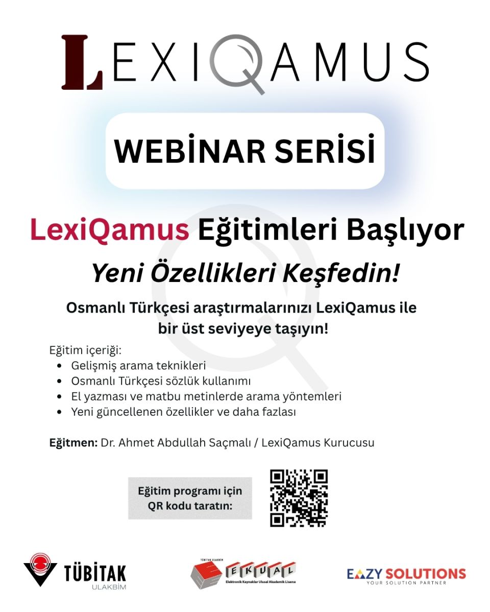 TÜBİTAK ULAKBİM EKUAL kapsamında erişime açılan LexiQamus veri tabanına yönelik olarak, araştırmacıların platformu daha etkin kullanabilmelerini desteklemek amacıyla özel bir webinar serisi düzenlenecektir.
