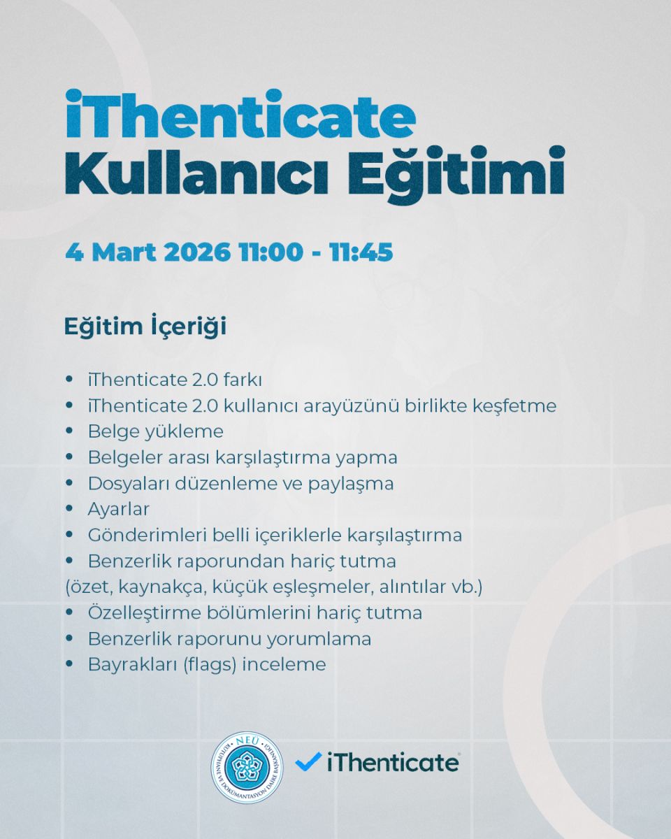 Konu: Necmettin Erbakan Üniversitesi iThenticate Kullanıcı Eğitimi