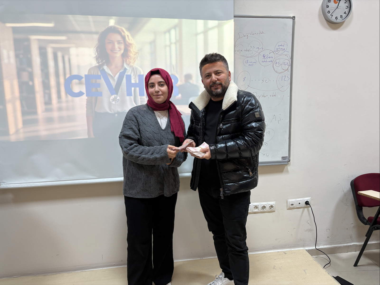 Etkinlik kapsamında; Ekim ayı birinci sınıf cevheri olarak belirlenen Binnur Zişan Ersan’a kitap hediyesi, havuz aboneliği ve 500 TL nakit ödülden oluşan ödülü Öğr. Gör. Gül Mengeş tarafından takdim edildi. Ekim ayı ikinci sınıf cevheri olan Rüveyda Koçyiğit ise 2.000 TL nakit ödülünü Öğr. Gör. Serpil Yakut’un elinden aldı.
