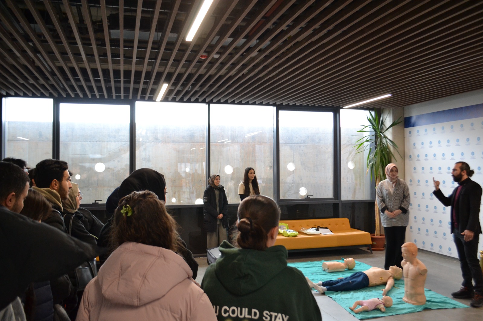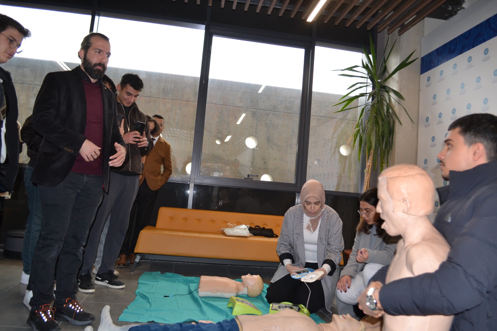 Fakültemiz öğrencilerine yönelik olarak düzenlenen “Doğru Anda, Doğru Adım: Temel Yaşam Desteği ve İlk Yardım Eğitimi” başarıyla tamamlandı. Eğitim programı, öğrencilerimizin acil durumlarda doğru, etkili ve zamanında müdahalede bulunabilmelerine yönelik bilgi ve becerilerini geliştirmeleri amaçlandı. Program; Acil Tıp Anabilim Dalı’ndan Doç. Dr. Mustafa Kürşat Ayrancı ve Dr. Öğr. Üyesi Sami Ataman ile Halk Sağlığı Anabilim Dalı’ndan Prof. Dr. Yasemin Durduran, Dr. Öğr. Üyesi Mehtap Yücel, Arş. Gör. Dr. Satı Türk ve Arş. Gör. Dr. Beyzanur Aygün tarafından yürütüldü. Eğitim süresince teorik anlatımların yanı sıra uygulamalı pratik çalışmalar ve video destekli sunumlara yer verilerek öğrencilerimizin konuyu pekiştirmeleri sağlandı. Programın gerçekleştirilmesinde emeği geçen hocalarımıza, idari personelimize ve katılım sağlayan tüm öğrencilerimize teşekkür ederiz.