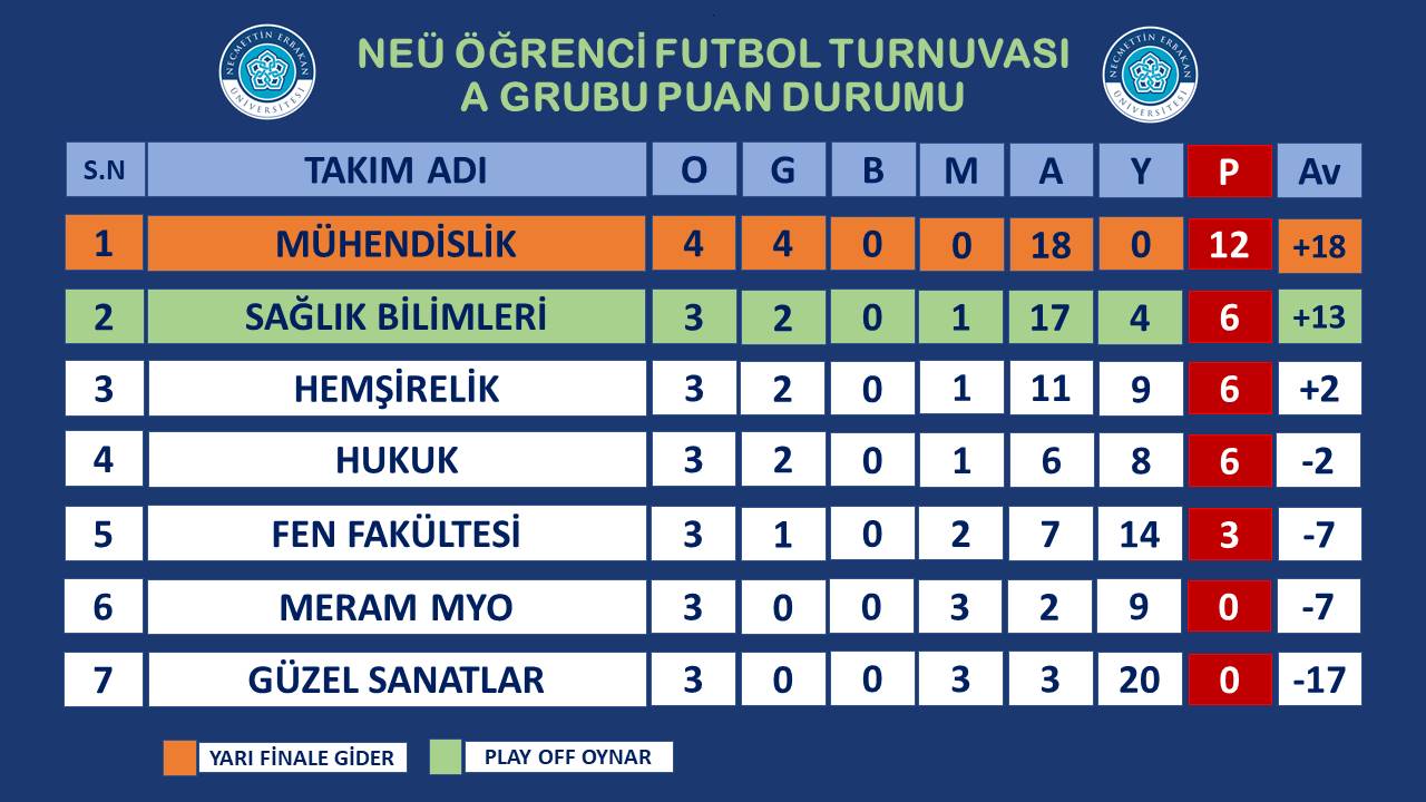 Futbol Takımımız grup maçlarında 4 maçta 4 galibiyet alarak grubu lider tamamlamıştır. Takımımızı tebrik eder, sonraki maçlarda başarılar dileriz.