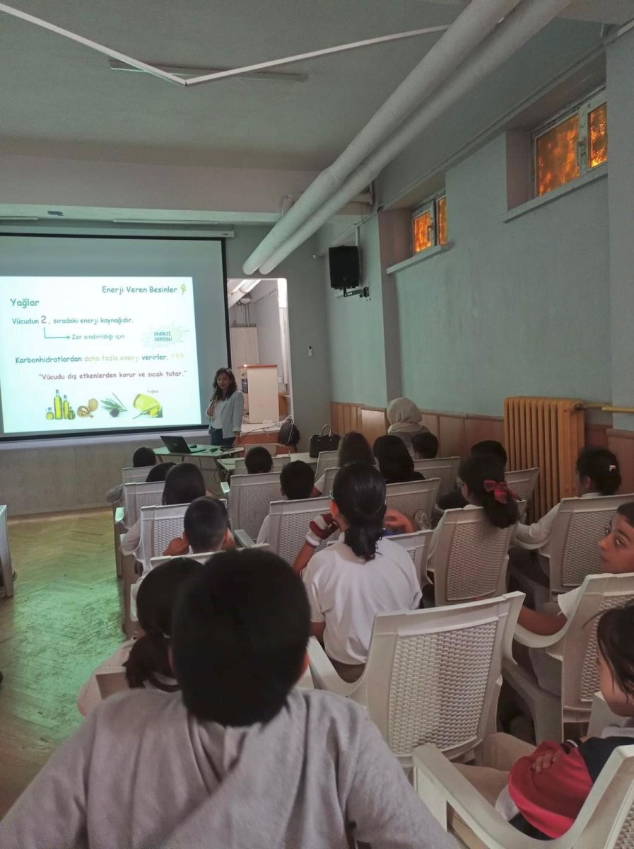 Dr. Öğr. Üyesi Gamze Üçok, Meram Fatih Sultan Mehmet İlkokulu 4. sınıf öğrencileriyle bir araya gelerek “Gıdalar ve Sağlıklı Beslenme” konulu bir seminer gerçekleştirdi. “Besinlerin Gizli Gücü” başlıklı etkinlikte öğrenciler, sağlıklı beslenmenin önemini eğlenerek öğrendiler. Etkinlik kapsamında besin ögeleri, dengeli ve sağlıklı beslenme ile doğal beslenmenin önemi üzerine bilgilendirme yapıldı.
