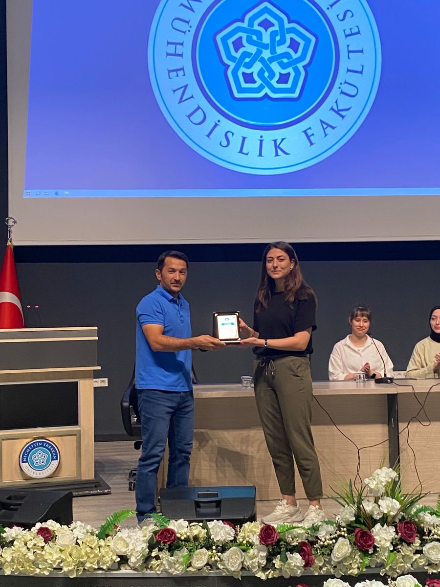 Ortak Eğitim Programı kapsamında istihdam edilen Bilgisayar Mühendisliği mezun öğrencileri program ile ilgili deneyimlerini yeni öğrencilere aktardı. Program sonunda, süreçte verdiği teknik katkılardan dolayı Sema Nur Emekçi'ye plaket takdim edildi.