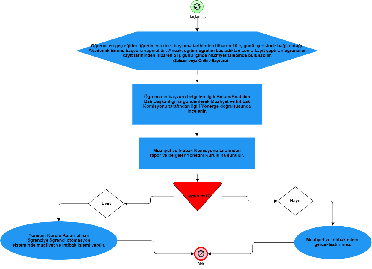 | DERS MUAFİYET VE İNTİBAK SÜRECİ İŞ AKIŞ ŞEMASI |