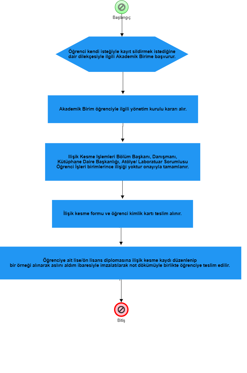| KENDİ İSTEĞİ ÜZERİNE KAYDI SİLİNEN ÖĞRENCİLER İÇİN KAYIT SİLME İŞ AKIŞ ŞEMASI |